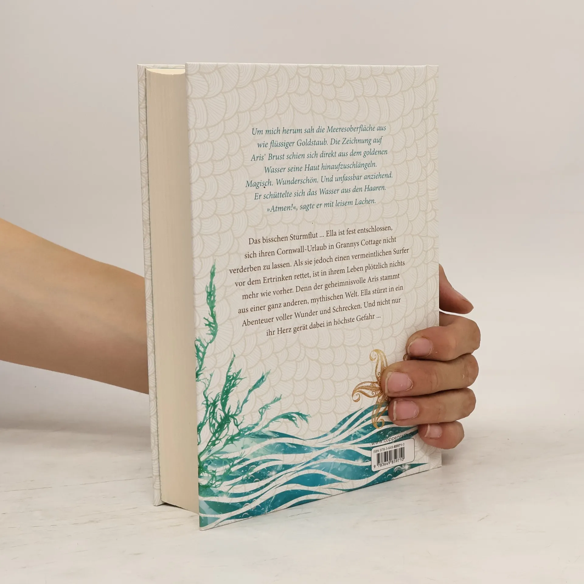 Eine Liebe zwischen zwei Welten Eigentlich wollte Ella nur einen ruhigen, entspannten Cornwall-Urlaub in Grannys Cottage verbringen, aber dann trifft erst eine Sturmflut die Küste und dann wird sie auch noch zur Lebensretterin, als sie den geheimnisvollen Surfer Aris aus den Wellen zieht. Dass diese Heldentat ihr komplettes Leben verändern würde, ahnt sie da noch nicht. Doch Aris stammt aus einer ganz anderen, mystischen Welt – und diese Welt möchte Ella unbedingt kennenlernen. Aber wie gefährlich ist diese Welt für Ella und ihr Herz? Der erste Band der Erfolgs-Trilogie ist ein wahrer Pageturner für Romantasy-Fans.