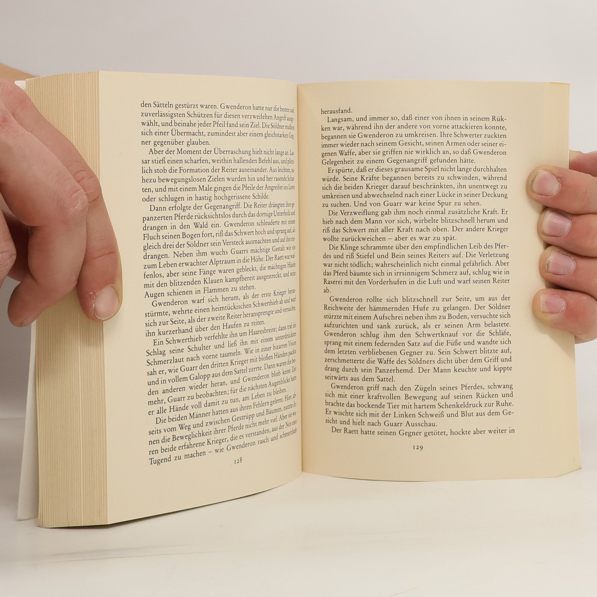 Gwenderon (1987) Der Schwarzeichenwald wird von allen denkenden Wesen als Heiligtum verehrt. König Oro, Herrscher Hochwaldens, beschützt ihn seit ewigen Zeiten zusammen mit den Waldläufern. Doch der machthungrige Zauberer Lassar begeht einen ungeheuerlichen Frevel: Er will das Holz des Schwarzeichenwaldes, um Schiffe zu bauen, und stellt Oro ein Ultimatum. Zur gleichen Zeit befindet sich Prinz Cavin, Oros einziger Sohn, auf dem Weg nach Hause. Gwenderon, der Waffenmeister Hochwaldens, und der Waldläufer Karelian begleiten ihn, und gemeinsam geraten sie von einem Abenteuer ins andere, um schließlich trotz aller Vorsicht doch in einen Hinterhalt Lassars zu laufen... Cavin (1987) Cavin hat Hochwalden endlich erreicht. Er weiß allerdings nicht, dass sein Vater tot ist und ihm der Zauberer Lassar in dessen Maske gegenübersteht. Um Cavins letzte Zweifel auszuräumen, führt Lassar ihn in das Herz des Waldes, zur Megidda, einer geheimnisvollen Festungsruine. Dort inszeniert er kunstvoll Oros Tod -, so dass Cavin glaubt, Gwenderon sei der Mörder. Und wie Lassar es geplant hat, beginnt der junge König eine gnadenlose Hetzjagd auf Gwenderon und die Rebellen... Megidda (1987) Cavin, Gwenderon, Karelian und eine Handvoll Überlebender sind nun die Gejagten. Der einzige Ort auf der Welt, an den Lassars Macht nicht hinreicht, die schwarze Festung im Herzen des Schwarzeichenwaldes, ist ihre letzte Zuflucht. In der Megidda, die – wie die Legende sagt – kein Mensch betreten darf, will er nicht das Schicksal der Welt verändern, stehen sie Lassars gewaltigem Heer gegenüber. Und Cavin weiß nicht, dass die Festung ein Geheimnis in sich birgt, das ihm äußerst gefährlich werden kann...
