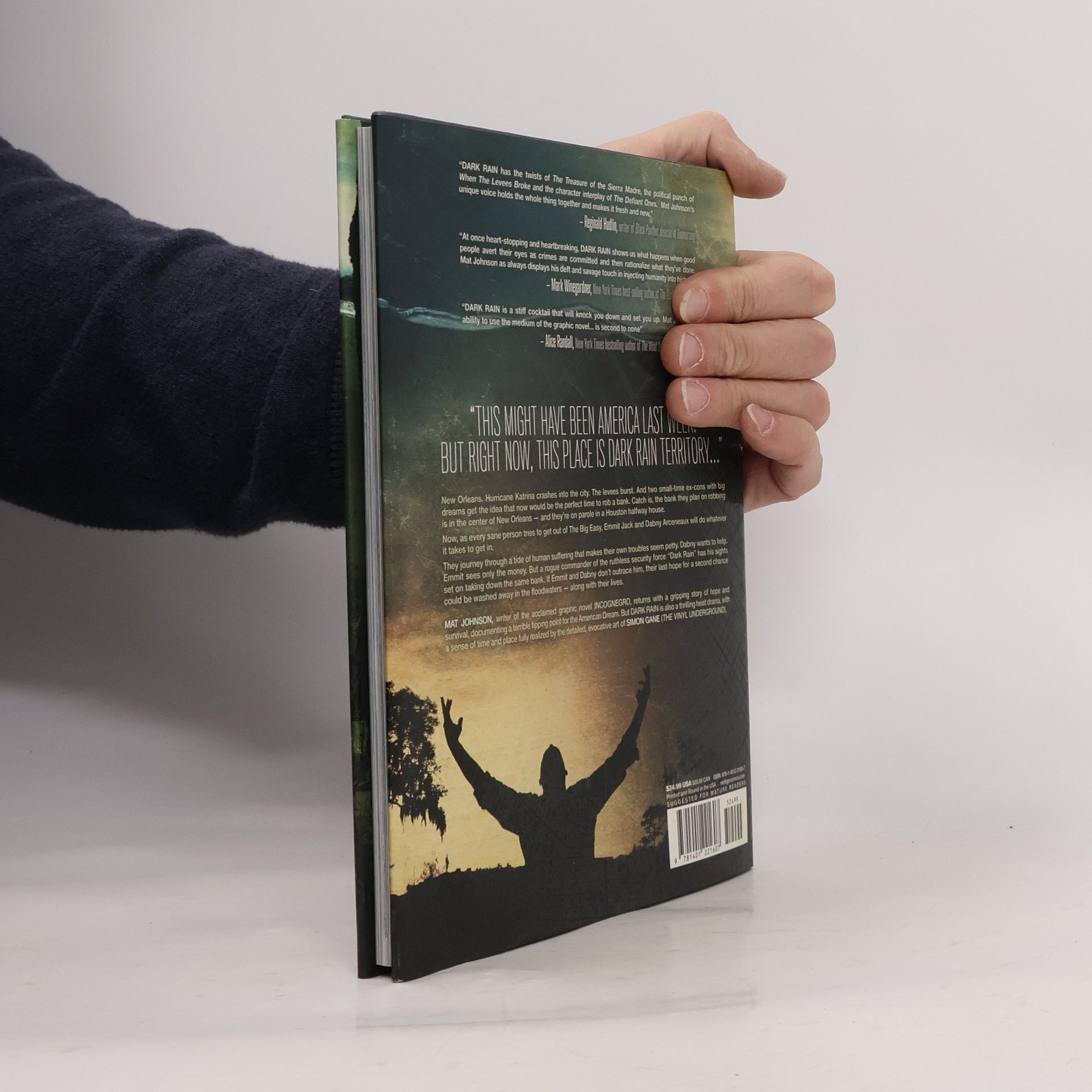 From Mat Johnson, writer of the acclaimed INCOGNEGRO, comes a graphic novel thriller set in the days after Hurricane Katrina. Two small-time ex-cons with big dreams get the idea that this would be the perfect time to rob a bank. Catch is, the bank is in New Orleans, and they're on parole in Houston. Now, as every sane person tries to get out of The Big Easy, Emmit and Dabny will do whatever it takes to get in.As they journey through a tide of human suffering, Dabny wants to help, and Emmit sees only the money. But a rogue commander of the ruthless security force "Dark Rain" has his sights set on taking down the same bank. If Emmit and Dabny don't outrace him, their last hope for a second chance could be washed away in the floodwaters – along with their lives.
