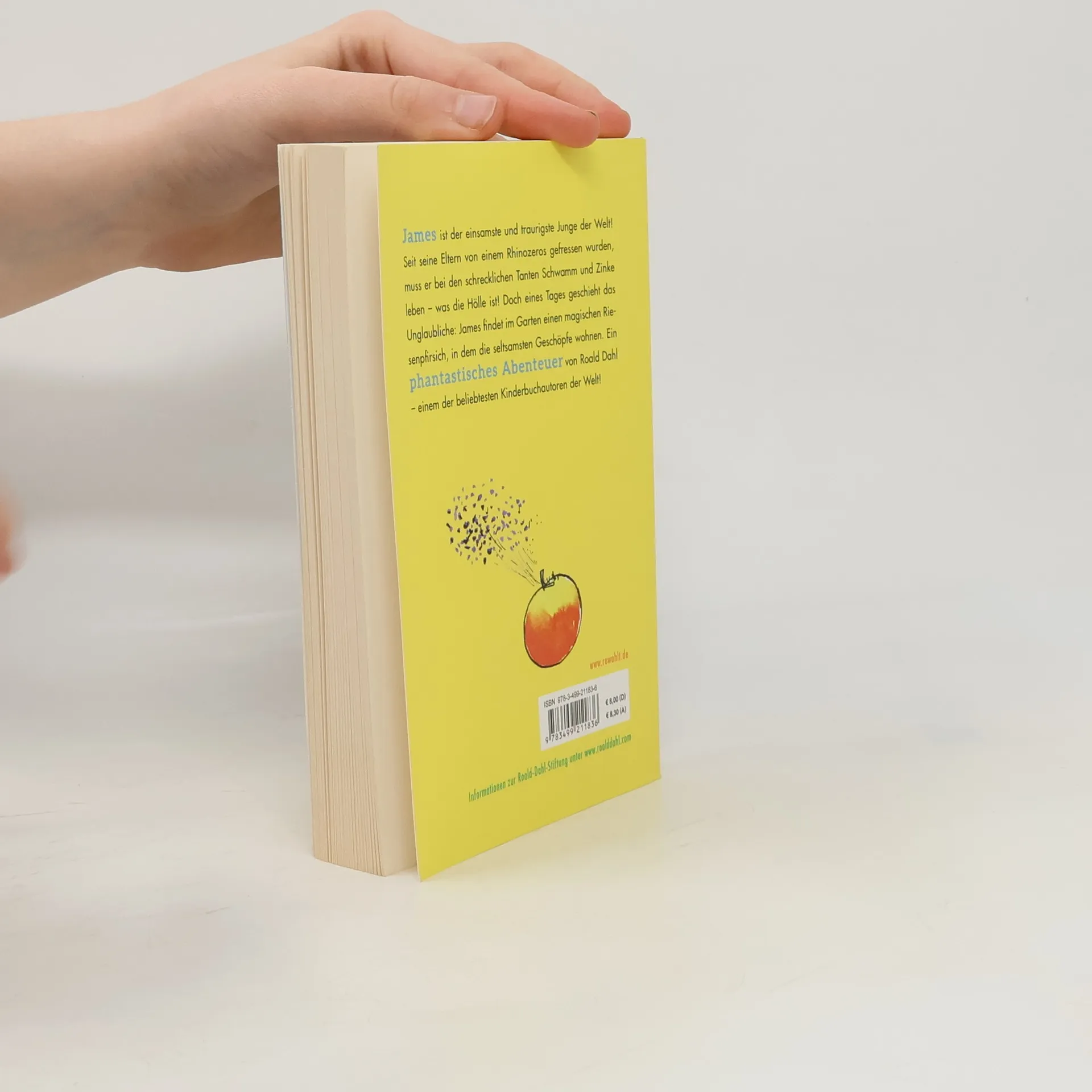 James ist der einsamste und traurigste Junge der Welt! Seit seine Eltern von einem Rhinozeros gefressen wurden, muss er bei den schrecklichen Tanten Schwamm und Zinke leben - was die Hölle ist! Doch eines Tages geschieht das Unglaubliche: James findet im Garten einen magischen Riesenpfirsich, in dem die seltsamsten Geschöpfe wohnen. Ein phantastisches Abenteuer von Roald Dahl - einem der beliebtesten Kinderbuchautoren der Welt!