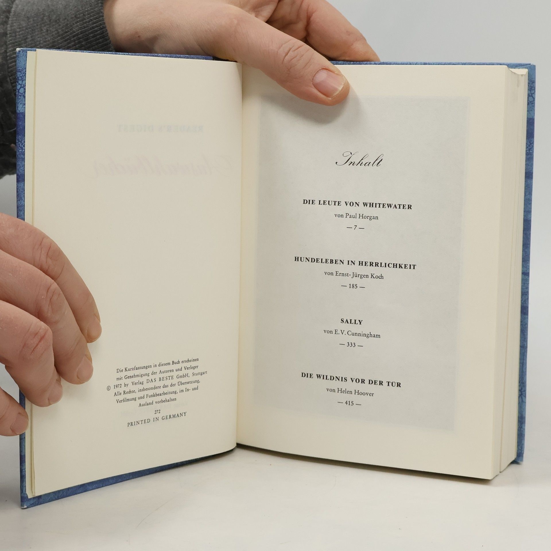 Readers Digest Auswahlbücher: Die Leute von Whitewater. Hundeleben in Herrlichkeit. Sally. Die Wildnis vor der Tür, Paul Horgan, Ernst-Jürgen Koch, E. V. Cunningham, Helen Hoover