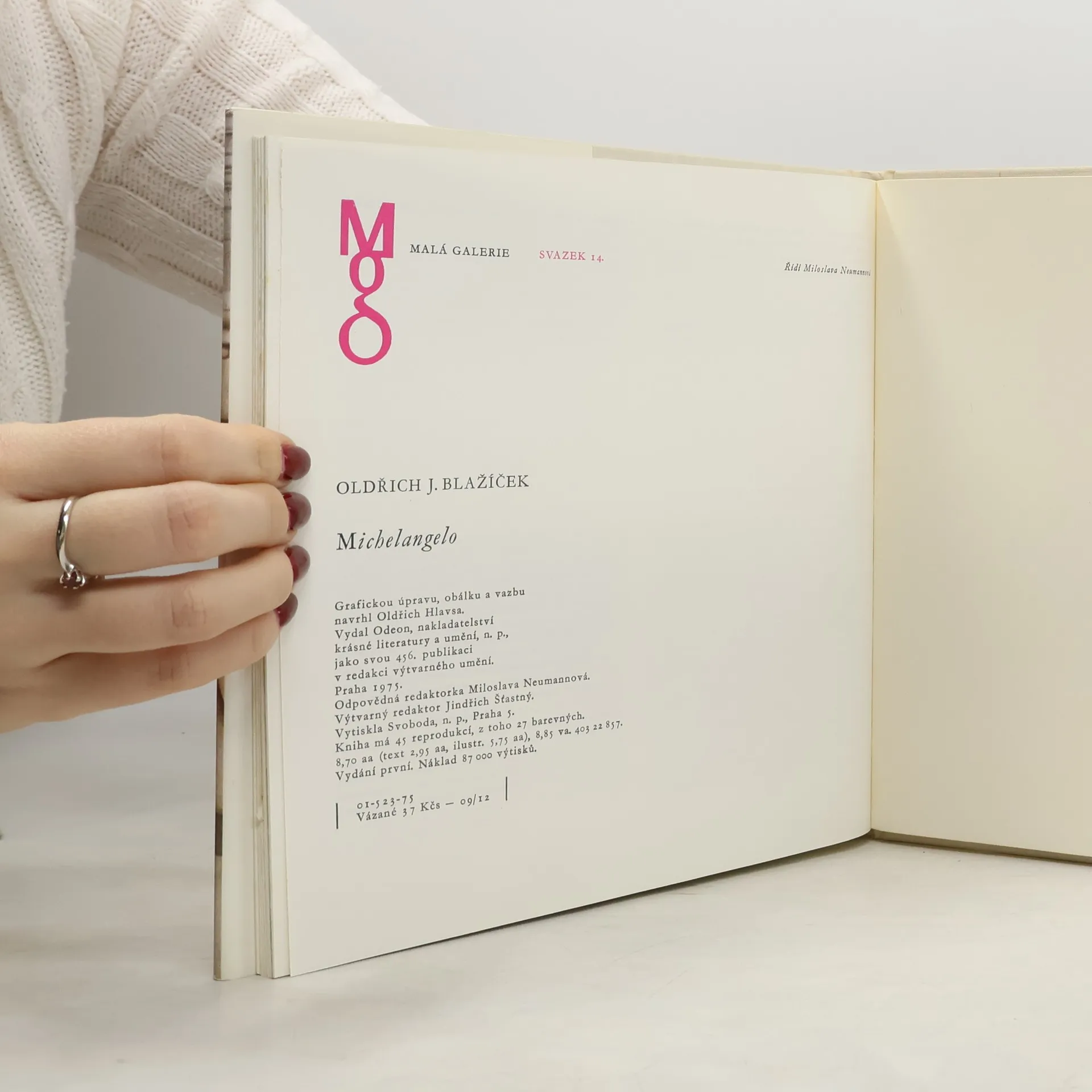 Malá monografie doplňující michelangelovskou literaturu je vydávána k pětistému výročí jeho narození. 1. vydání