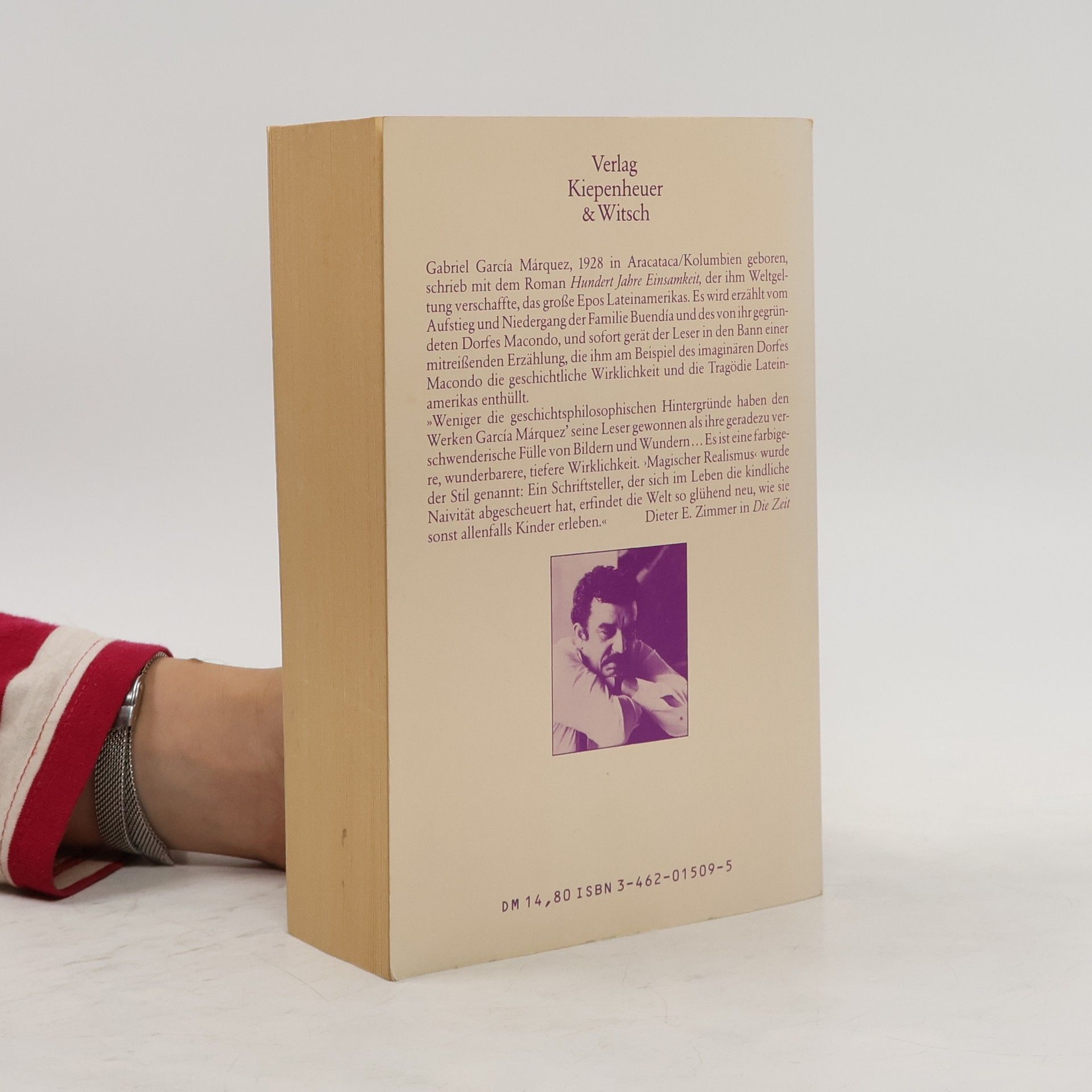 Gabriel García Márquez, 1928 in Aracataca/Kolumbien geboren, schrieb mit dem Roman Hundert Jahre Einsamkeit , der ihm Weltgeltung verschaffte, das große Epos Lateinamerikas. Es wird erzählt vom Aufstieg und Niedergang der Familie Buendía und des von ihr gegründeten Dorfes Macondo, und sofort gerät der Leser in den Bann einer mitreißenden Erzählung, die ihm am Beispiel des imaginären Dorfes Macondo die geschichtliche Wirklichkeit und die Tragödie Lateinamerikas enthüllt. »Weniger die geschichtsphilosophischen Hintergründe haben den Werken García Márquez' seine Leser gewonnen als ihre geradezu verschwenderische Fülle von Bildern und Wundern... Es ist eine farbigere, wunderbarere, tiefere Wirklichkeit. ›Magischer Realismus‹ wurde der Stil genannt: Ein Schriftsteller, der sich im Leben die kindliche Naivität abgescheuert hat, erfindet die Welt so glühend neu, wie sie sonst allenfalls Kinder erleben.« -- Dieter E. Zimmer in Die Zeit