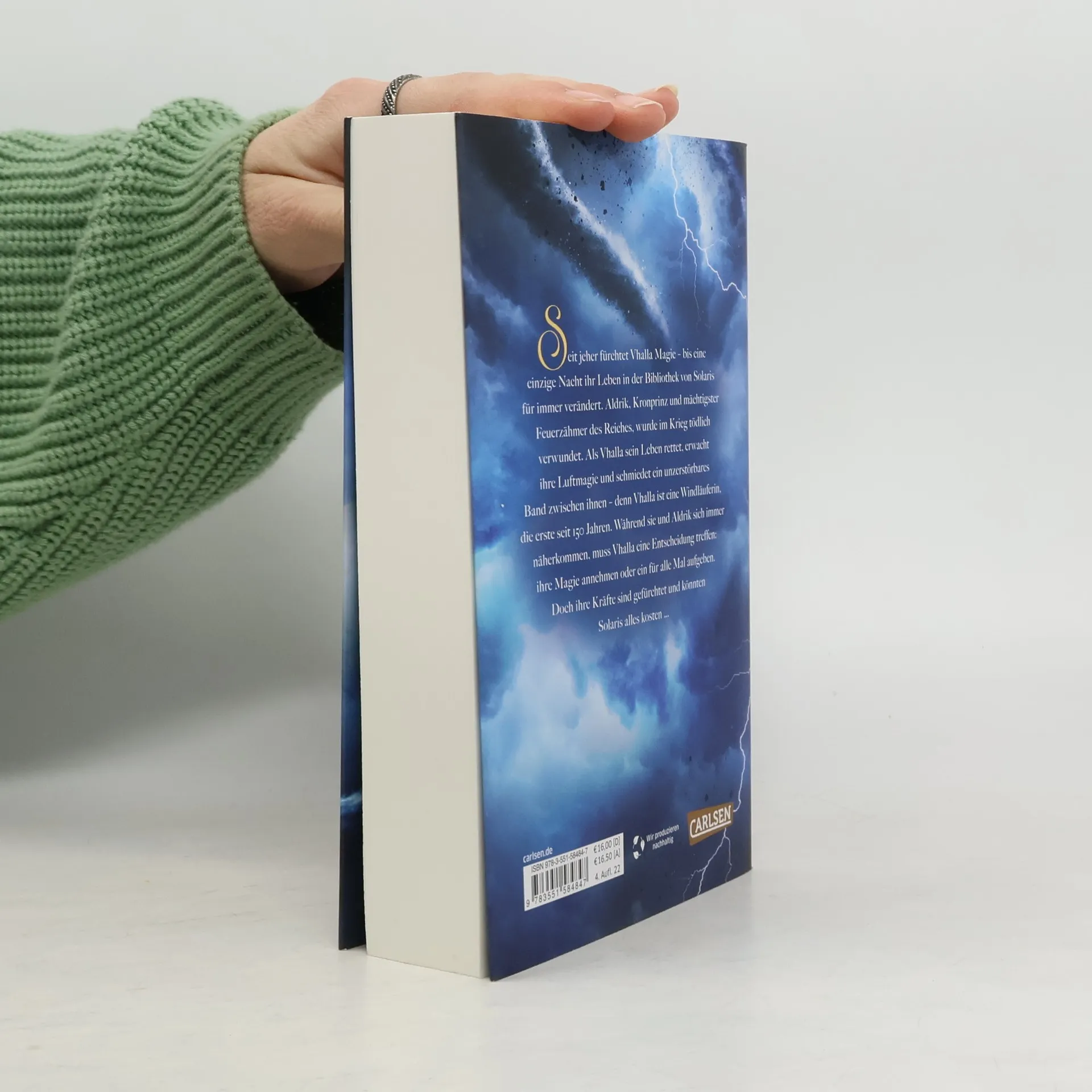 Eine junge Frau entdeckt ihre verloren geglaubte Gabe, während ein Prinz mit der Macht über das Feuer in eine gefährliche Lage gerät. Vhalla führt ein glückliches Leben in ihrer Welt der Bücher, bis eine Nacht alles verändert. Aldrik, der Kronprinz und mächtigste Feuerzähmer, wird im Krieg schwer verletzt. Als Vhalla ihm das Leben rettet, erwacht ihre Magie und verbindet sie untrennbar mit Aldrik – sie ist die erste Windläuferin seit 150 Jahren. Doch ihre Luftmagie ist gefürchtet und darf niemandem, vor allem nicht dem Kaiser, bekannt werden. Während die Kämpfe im Norden toben, entwickelt sich eine tiefere Verbindung zwischen Aldrik und Vhalla. Ihre Liebe birgt jedoch das Risiko, ganz Solaris in Flammen aufgehen zu lassen. Diese magische Romantasy-Saga ist geprägt von Action, Drama und einer bittersüßen Liebe, die das Herz berührt. Leser*innen sind begeistert und schwärmen von der fesselnden Handlung und den emotionalen Wendungen, die sie bis zur letzten Seite in ihren Bann ziehen. Die Reihe umfasst fünf Bände, die die Abenteuer von Vhalla und Aldrik weiterverfolgen.