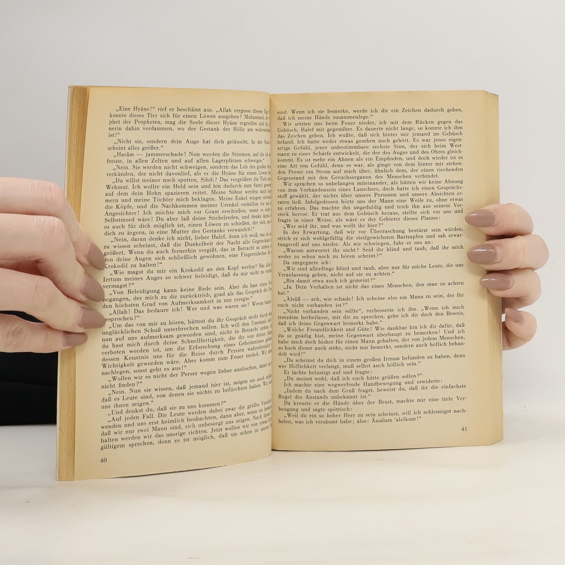 Ereignisse aus dem vorigen Band zeigen ihre tiefere Bedeutung; in einem langen Nachtgespräch halten der 'Ustad' (der Meister der Dschamikun) und Kara Ben Nemsi innere Einkehr. Es ist Karl Mays eigene Persönlichkeit, die in diesem Spätwerk im ernsten Ringen mit sich selbst liegt.