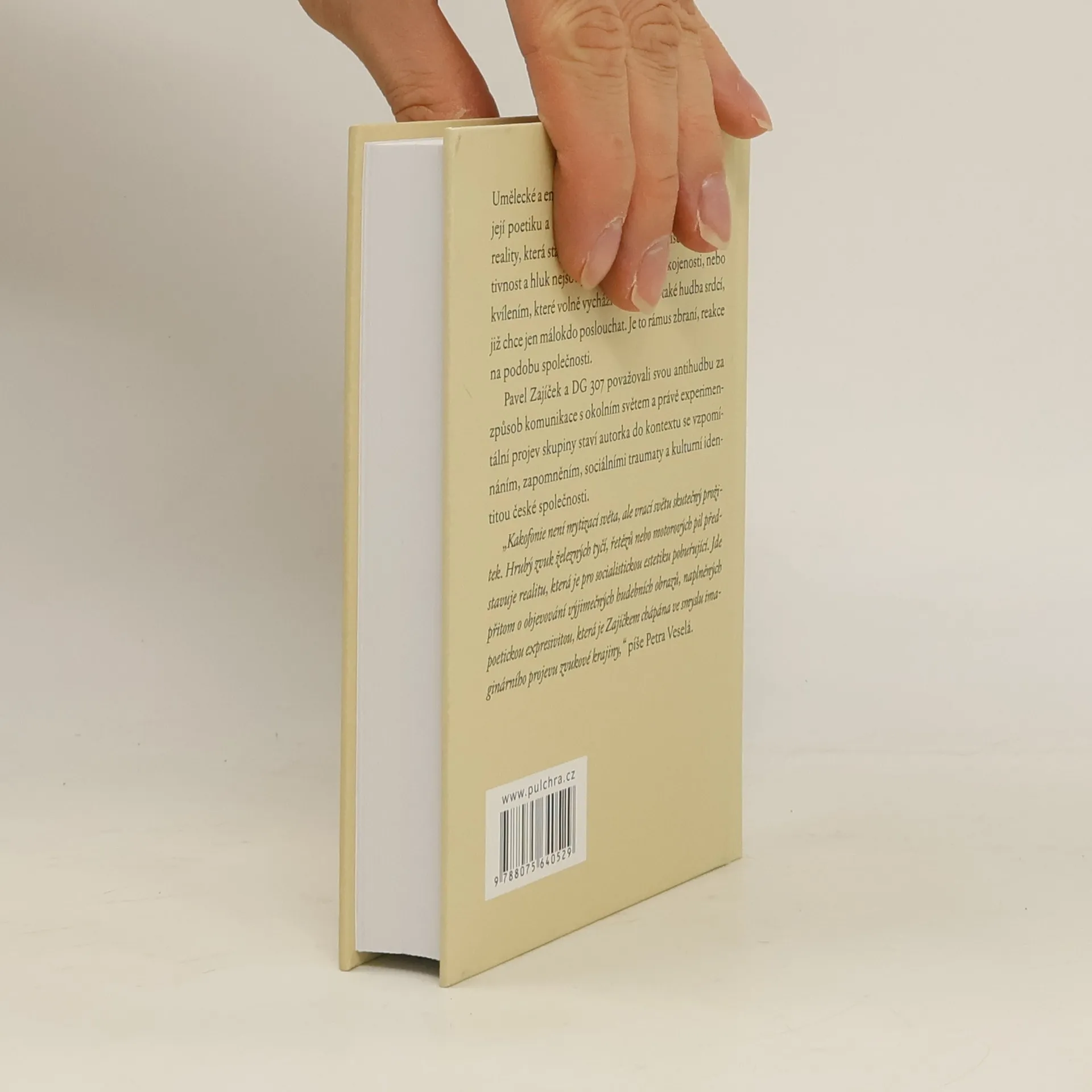Paměť a zapomnění v české společnosti na příkladu umělecké činnosti Pavla Zajíčka a skupiny DG 307. Umělecké a emotivně zabarvené vyjádření skupiny DG 307, její poetiku a hudbu, lze považovat za metaforický odraz reality, která stále vyvolává historické reminiscence. Apelativnost a hluk nejsou jen vyjádřením nespokojenosti, nebo kvílením, které volně vychází z duše, je to také hudba srdcí, již chce jen málokdo poslouchat. Je to rámus zbraní, reakce na podobu společnosti. Pavel Zajíček a DG 307 považovali svou antihudbu za způsob komunikace s okolním světem a právě experimentální projev skupiny staví autorka do kontextu se vzpomínáním, zapomněním, sociálními traumaty a kulturní identitou české společnosti. „Kakofonie není mytizací světa, ale vrací světu skutečný prožitek. Hrubý zvuk železných tyčí, řetězů nebo motorových pil představuje realitu, která je pro socialistickou estetiku pobuřující. Jde přitom o objevování výjimečných hudebních obrazů, naplněných poetickou expresivitou, která je Zajíčkem chápána ve smyslu imaginárního projevu zvukové krajiny,“ píše Petra Veselá. Autorka vystudovala kulturologii, antropologii a hru na saxofon, takže se pohybuje nejen v oblasti teorie kultury, ale sama po léta hrála s jazzovým kvartetem. Její teoretické úvahy o hudbě DG 307 jsou proloženy fragmenty a interpretacemi mnohých rozhovorů, které vedla s Pavlem Zajíčkem, ale i vyjádřeními a komentáři ostatních členů skupiny.