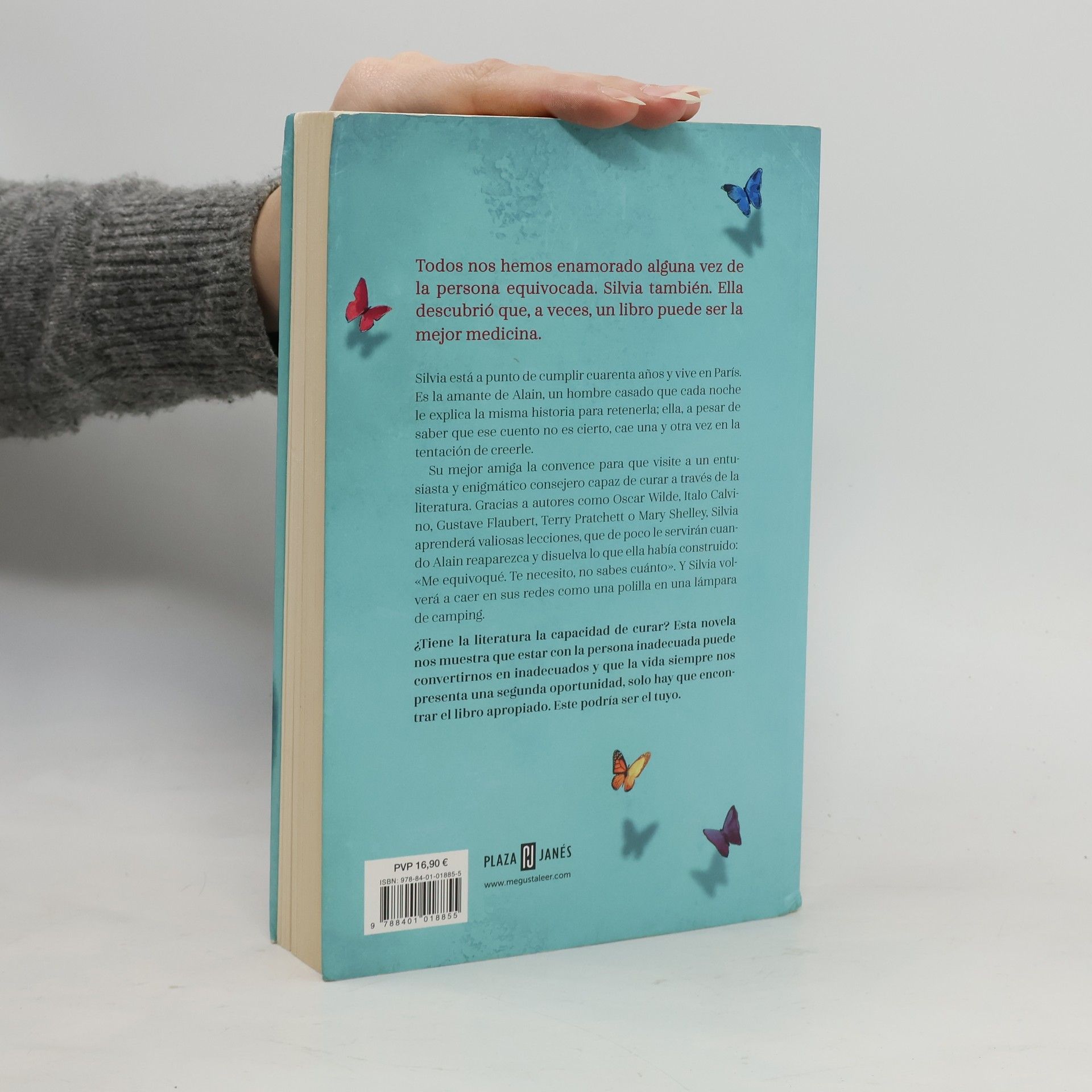 ¿Tiene la literatura la capacidad de curar? Esta novela explora cómo estar con la persona inadecuada puede transformarnos y cómo la vida siempre ofrece segundas oportunidades, solo hay que encontrar el libro adecuado. Hay novelas que actúan como bálsamo y otras que provocan catarsis, ofreciendo alegría o ayudando a procesar la tristeza. Los libros contienen claves que pueden dar sentido al pasado o iluminar el futuro. Todos hemos amado a la persona equivocada, y Silvia no es la excepción. A punto de cumplir cuarenta años en París, es amante de Alain, un hombre casado que la atrapa con la misma historia cada noche. Aunque sabe que es un cuento, no puede evitar caer en la tentación de creerle. Su mejor amiga la anima a visitar a un enigmático consejero que utiliza la literatura como terapia. A través de autores como Oscar Wilde y Mary Shelley, Silvia aprenderá lecciones valiosas, aunque estas se pondrán a prueba cuando Alain regrese, deshaciendo lo que había construido. Atraída nuevamente por él, como una polilla a la luz, Silvia se enfrentará a las oscuras páginas de su vida y a las zonas borrosas de su ser, encontrando obstáculos en su camino de autodescubrimiento.