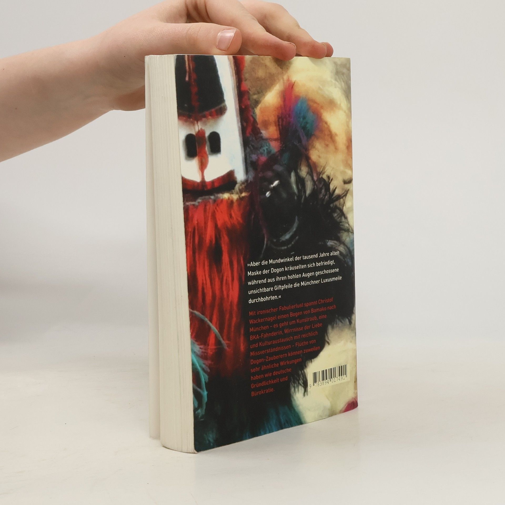 Stefan hat Deutschland schon vor Jahrzehnten den Rücken gekehrt und lebt als Schreiner in Mali, er fühlt sich nahezu heimisch in Bamako unter seinen malischen Freunden. Für einen der reichsten Männer der Stadt eine Küche anzufertigen, scheint ihm ein lukrativer Auftrag, doch dann begegnet er dessen Frau und verliebt sich auf der Stelle – was Folgen hat! Denn Fatoumata ist, wenn auch unfreiwillig, in die Kunstschiebergeschäfte ihres Ehemanns verwickelt. In München ermittelt Oberstaatsanwalt Dr. Ludwig Höfl wegen der Einfuhr geraubter Kulturgüter aus Afrika und lässt den Galeristen Philipp Laube hochgehen, der eine heilige Maske des malischen Dogon-Volkes für seine Galerie 'Dialog der Kulturen' ergattert hatte. Ausgerechnet Fatoumata wird als Vermittlerin eingesetzt. Mit ironischer Fabulierlust verbindet Christof Wackernagel Bamako mit München zu einem atmosphärisch dichten Spannungsroman, in dem es um Kunstraub, Geheimnisse, eine BKA- Fahnderin, Wirrnisse der Liebe, Kulturaustausch mit reichlich Missverständnissen geht. Ein Roman mit viel Lokalkolorit, voller überraschender und dramatischer Wendungen, in dem nichts so ist, wie es scheint, und Flüche von Dogon-Zauberern zuweilen sehr ähnliche Wirkungen haben wie deutsche Gründlichkeit und Bürokratie.
