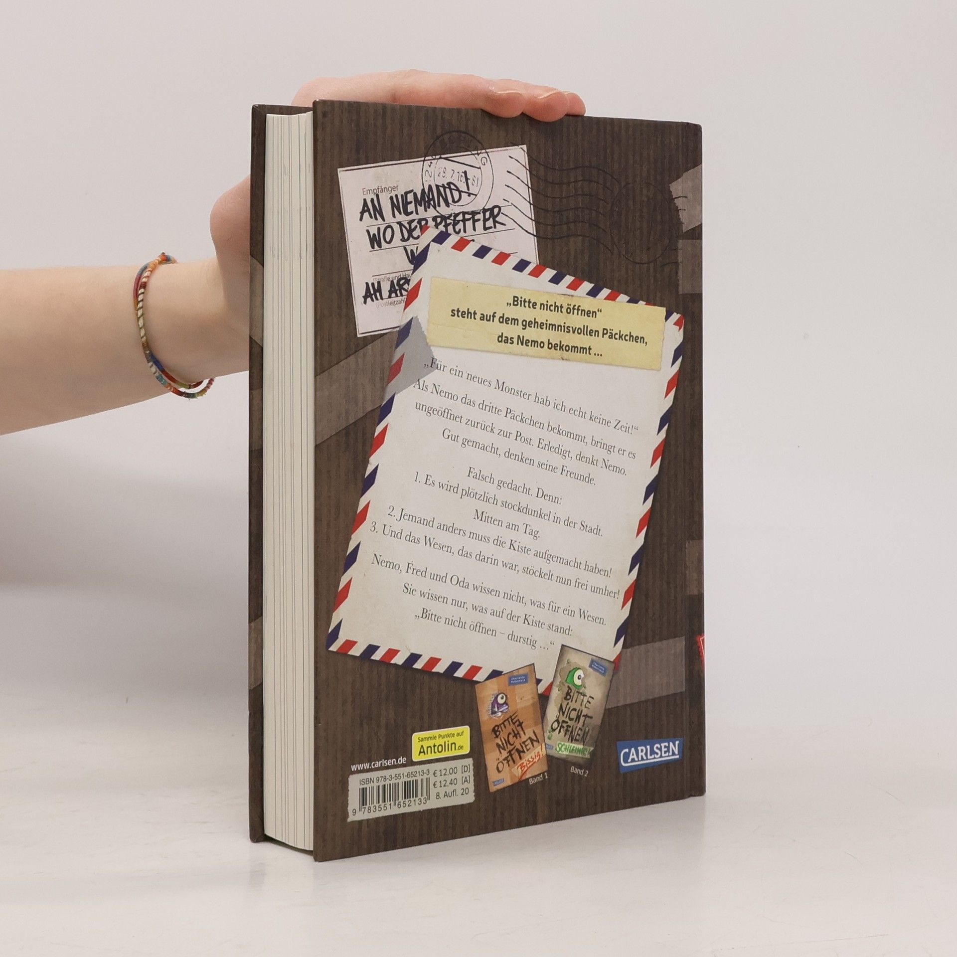 "Bitte nicht öffnen!" steht auf dem geheimnisvollen Päckchen, das Nemo bekommt. Also macht Nemo es auf ...BITTE NICHT ÖFFNEN, BAND 3: „Für ein neues Monster hab ich echt keine Zeit!“ Als Nemo das dritte Päckchen bekommt, bringt er es ungeöffnet zurück zur Post. Erledigt, denkt Nemo. Gut gemacht, denken seine Freunde. Falsch gedacht. Denn: 1. Es wird plötzlich stockdunkel in der Stadt. Mitten am Tag.2. Jemand anders muss die Kiste aufgemacht haben!3. Und das Wesen, das darin war, stöckelt nun frei umher!Nemo, Fred und Oda wissen nicht, was für ein Wesen. Sie wissen nur, was auf der Kiste stand: „Bitte nicht öffnen – durstig …“Nach dem Kinderbuch-Bestseller-Erfolg von Band 1 und 2 nun endlich da: ein neues lustiges und turbulentes Abenteuer rund um Schule, Freundschaft und ein verlorenes Wesen, das nach Hause will! ***Voller überraschender Wendungen, Sprachwitz und mit vielen Bildern vom unverwechselbaren Fréderic Bertrand. ***Das perfekte Buch für Jungs und Mädchen – und ihre Eltern! ***