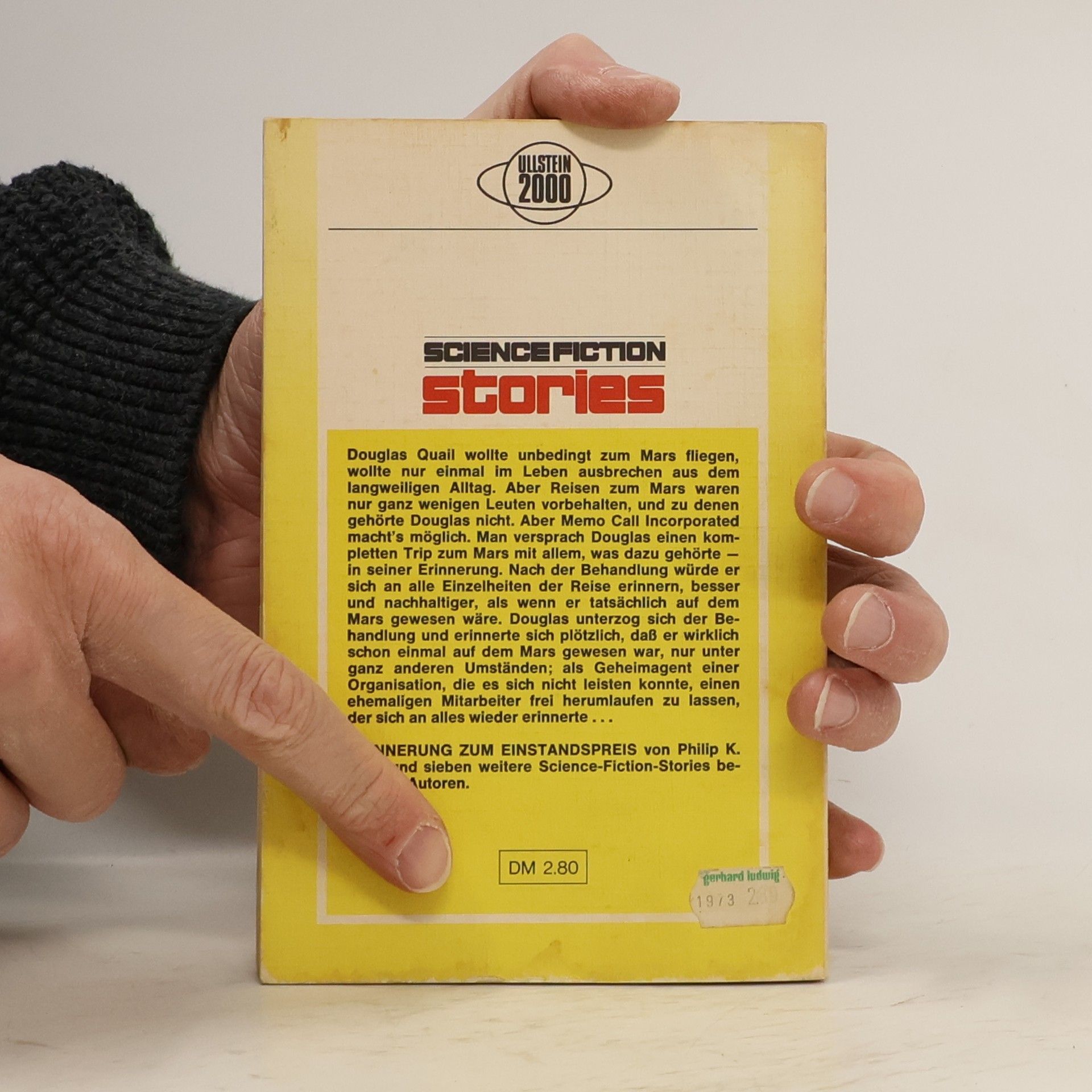Enthält folgende Stories: Philip K. Dick: Erinnerung zum Einstandspreis Bob Shaw: Das Licht besserer Zeiten Roger Zelazny: Die Erschaffung eines Gottes R. A. Lafferty: Am Anfang war die Großmutter Frederik Pohl: Romanze übermorgen Domnic Plachten: Der Dilettant A. A. Valde: Der Reaktionär Brian W. Aldiss: Amen und Aus