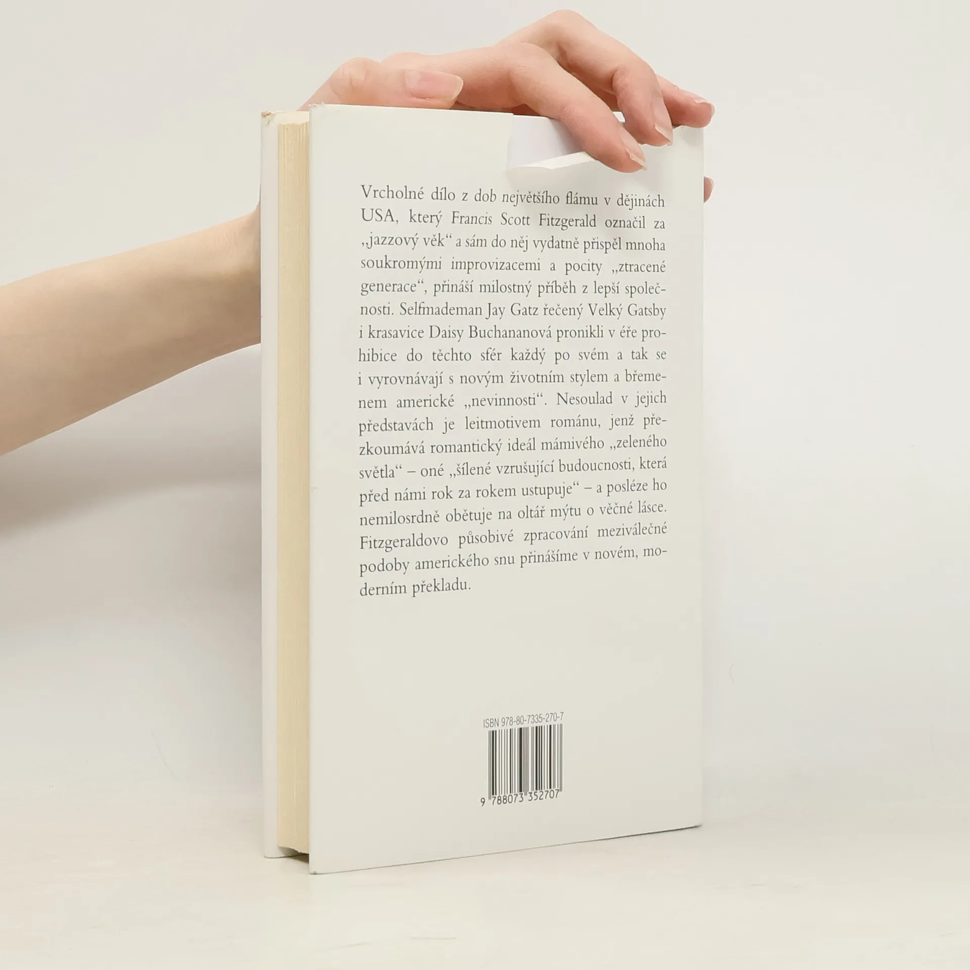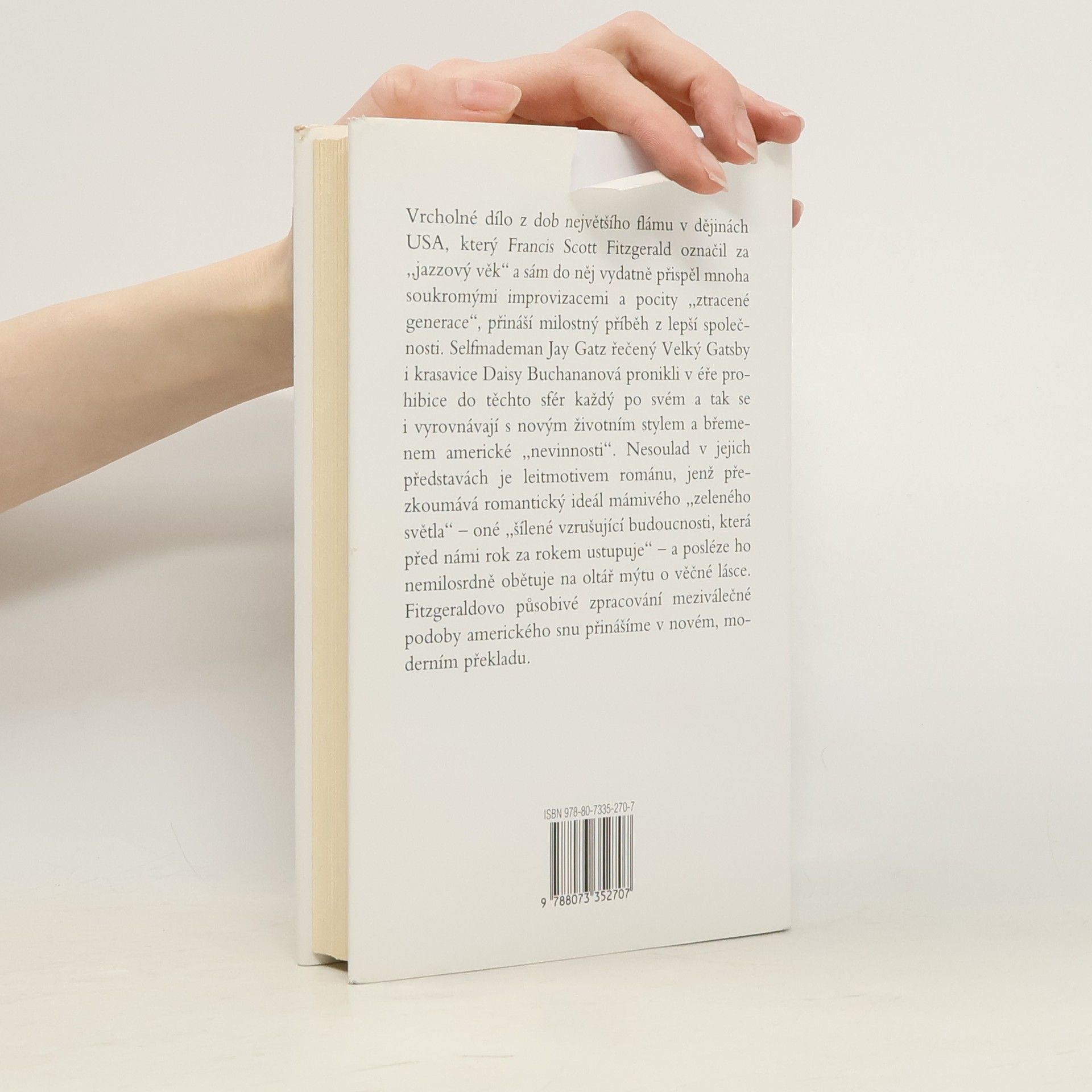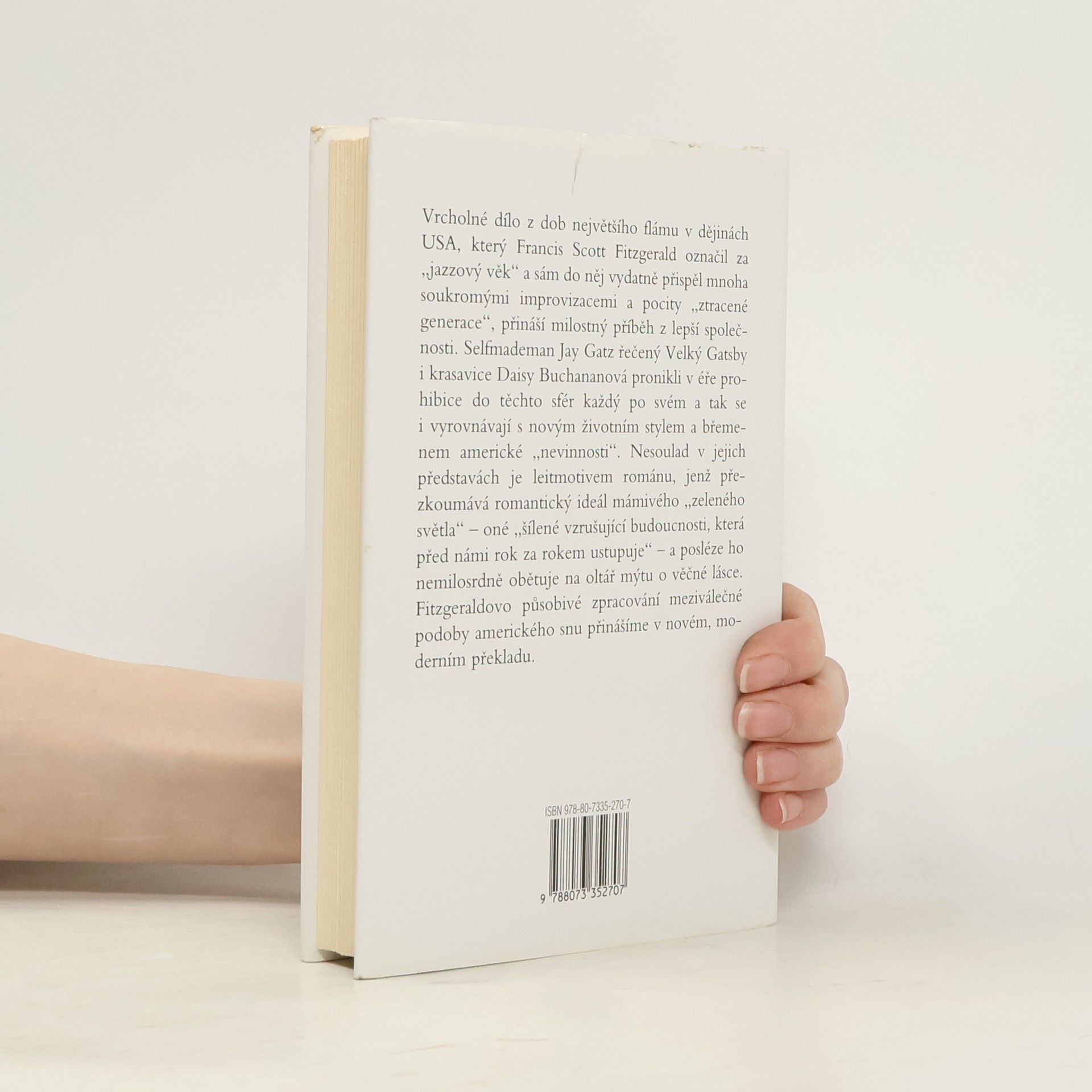 Vrcholné dílo z dob největšího flámu v dějinách USA, který Francis Scott Fitzgerald označil za „jazzový věk“ a sám do něj vydatně přispěl mnoha soukromými improvizacemi a pocity „ztracené generace“, přináší milostný příběh z lepší společnosti. Selfmademan Jay Gatz řečený Velký Gatsby i krasavice Daisy Buchananová však v éře prohibice do těchto sfér pronikli každý po svém a podobně se vyrovnávají i s novým životním stylem a břemenem americké „nevinnosti“. Nesoulad v jejich představách je leitmotivem románu, jenž přezkoumává romantický ideál mámivého „zeleného světla“ - oné „budoucnosti, jež před námi rok od roku ustupuje“ - a posléze ho nemilosrdně obětuje na oltář mýtu o věčné lásce. Fitzgeraldovo působivé zpracování meziválečné podoby amerického snu je v této edici doplněno nedokončeným románem Poslední magnát, ve kterém se téma hledání, úpadku a pádu rozvíjí v atraktivních kulisách hollywoodských filmových ateliérů.
