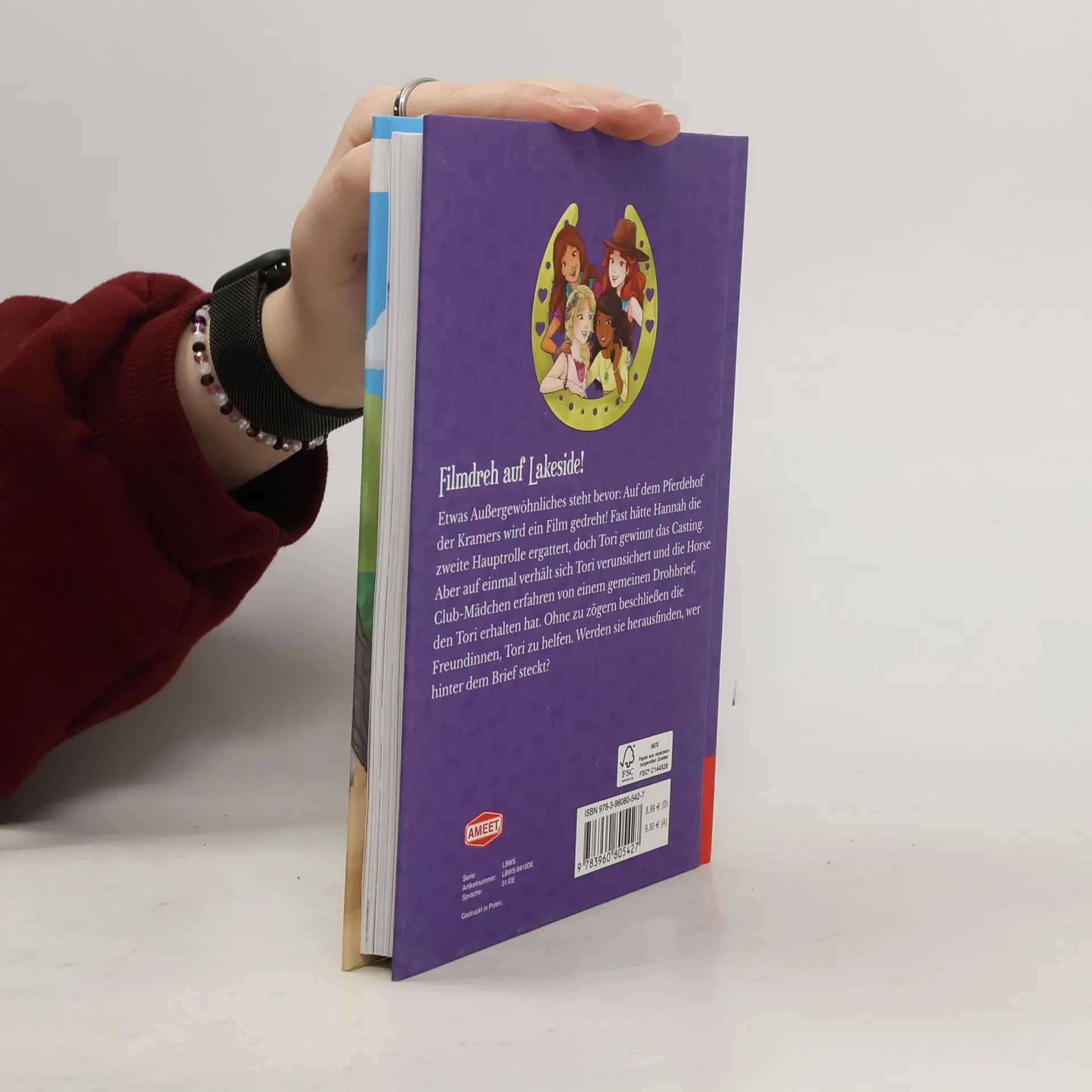 Auf dem Gestüt Lakeside soll ein Film gedreht werden und beinah hätte Hannah sogar eine Rolle ergattert. Doch die Siegerin des Castings gibt plötzlich auf und die 4 Freundinnen erfahren von einem Drohbrief und einem verschwundenen Pferd. Natürlich versucht der Horse-Club sofort denjenigen zu finden, der hinter dieser Intrige steckt. Endlich mal wieder ein Horse-Club-Buch, das nicht von der kleinen Schwester Mia handelt, sondern von den 4 Freundinnen des Horse-Clubs selbst! Es ist deshalb auch 3-mal so umfangreich wie sein Vorgänger, hat eine spannende und "erwachsenere" Handlung und die wenigen Zeichnungen sind in Schwarz-Weiss. Nichtsdestotrotz ein besserer Titel innerhalb der Reihe für ältere Pferdefreundinnen ab 8 Jahren. Wo die Reihe läuft, gern empfohlen. Ab 8