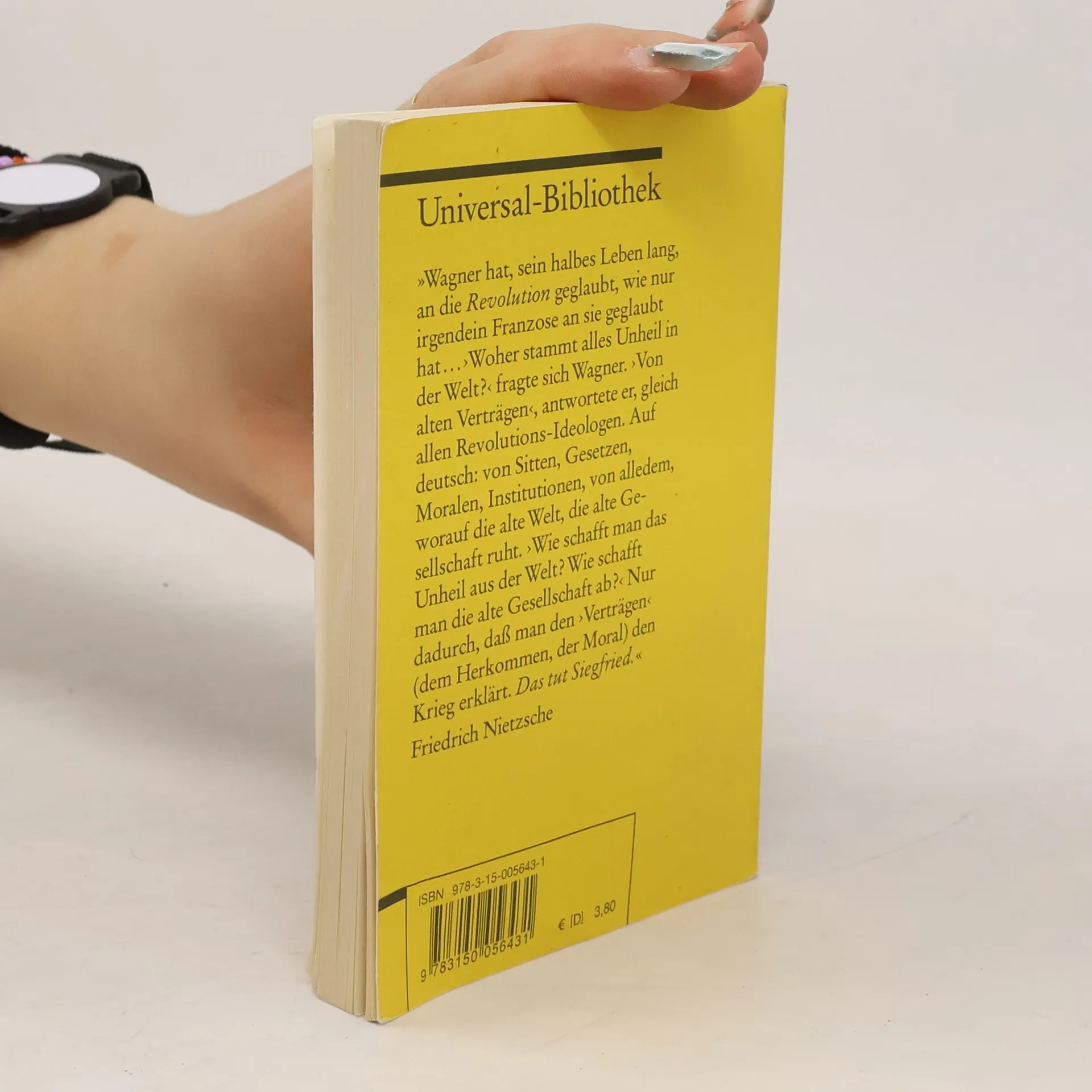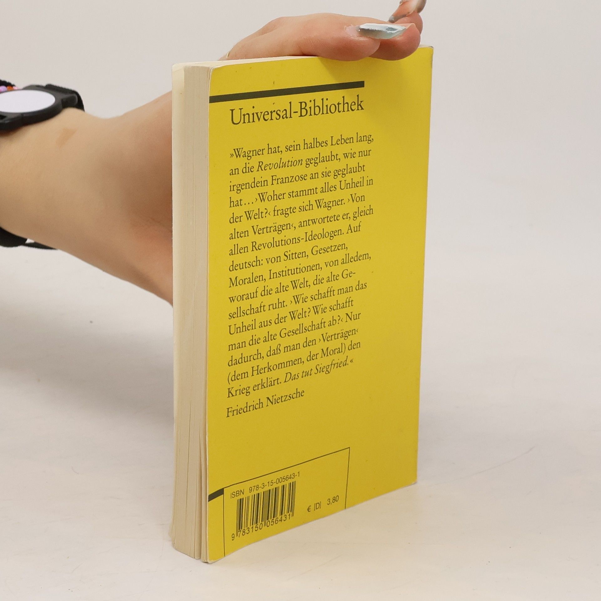 »Wagner hat, sein halbes Leben lang, an die Revolution geglaubt, wie nur irgendein Franzose an sie geglaubt hat … ›Woher stammt alles Unheil in der Welt?‹ fragte sich Wagner. ›Von alten Verträgen‹, antwortete er, gleich allen Revolutions-Ideologen. Auf deutsch: von Sitten, Gesetzen, Moralen, Institutionen, von alledem, worauf die alte Welt, die alte Gesellschaft ruht. ›Wie schafft man das Unheil aus der Welt? Wie schafft man die alte Gesellschaft ab?‹ Nur dadurch, dass man den ›Verträgen‹ (dem Herkommen, der Moral) den Krieg erklärt. Das tut Siegfried.« Friedrich Nietzsche Ausgabe ediert nach den Original-Textbüchern, mit den Varianten der Partitur jeweils am Fuß der Seite, ergänzt um Nachwort und Literaturhinweise.