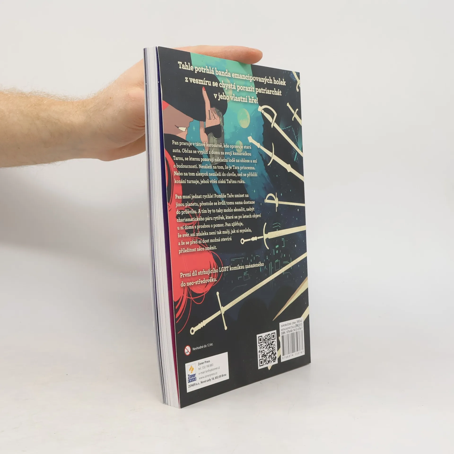 Tahle potrhlá banda holek z vesmíru se chystá porazit patriarchát v jeho vlastní hře! Pan pracuje v tátově karosárně, kde opravuje stará auta. Občas se vyplíží z domu za svojí kamarádkou Tarou, se kterou pozorují nákladní lodě na obloze a sní o budoucnosti. Nezáleží na tom, že je Tara princezna. Nebo na tom alespoň nezáleží do chvíle, než se přiblíží konání turnaje, jehož vítěz získá Tařinu ruku. Pan musí jednat rychle! Pomůže Taře zmizet na jinou planetu, přestože se kvůli tomu sama dostane do průšvihu. A tím by to taky mohlo skončit, nebýt charismatického páru gladiátorek, které se po letech objeví u ní doma s prosbou o pomoc. Pan zjišťuje, že svět ani zdaleka není tak malý, jak si myslela, a že se před ní dost možná otevírá příležitost něco změnit. Znovu tedy stojí před složitou volbou, jestli zůstat a dál se vrtat v autech, nebo se vydat na cestu za dobrodružstvím. A to i za cenu toho, že už se třeba nebude moct nikdy vrátit! Cosmoknights je první díl komiksu zasazeného do neo-středověku. Pojednává o partě sympatických emancipovaných holek, které se snaží změnit svět k lepšímu. Jdete do toho s nimi?