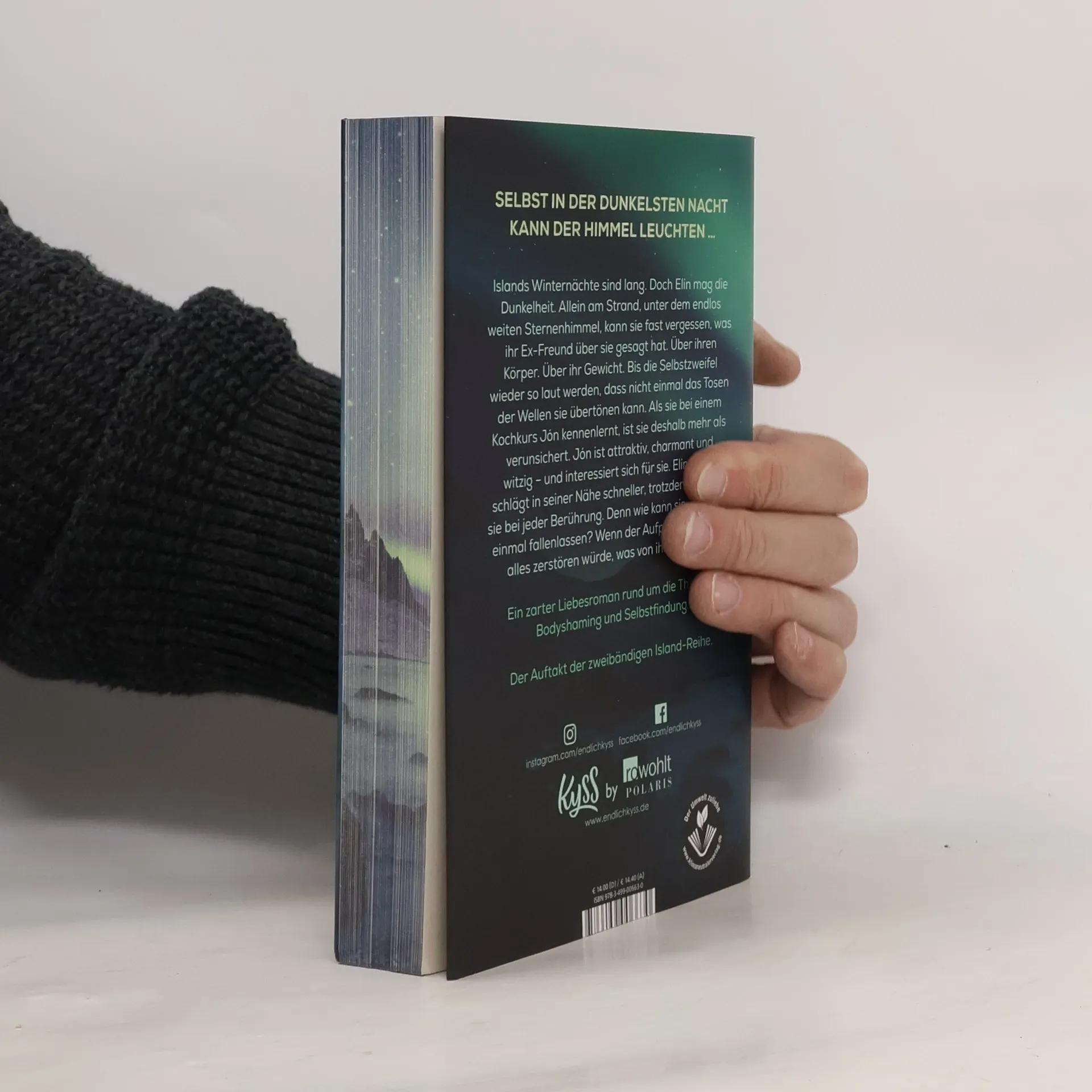 Sehnsuchtsort Island. Die neue zweibändige Reihe der Spiegel-Bestsellerautorin. Islands Winternächte sind lang. Doch Elín mag die Dunkelheit. Allein am Strand, unter dem endlos weiten Sternenhimmel, kann sie fast vergessen, was ihr Ex-Freund über sie gesagt hat. Über ihren Körper. Über ihr Gewicht. Bis die Selbstzweifel wieder so laut werden, dass nicht einmal das Tosen der Wellen sie übertönen kann. Als sie bei einem Kochkurs Jón kennenlernt, ist sie deshalb mehr als verunsichert. Jón ist attraktiv, charmant und witzig – und interessiert sich für sie. Elíns Herz schlägt in seiner Nähe schneller, trotzdem erstarrt sie bei jeder Berührung. Denn wie kann sie sich noch einmal fallen lassen? Wenn der Aufprall am Boden alles zerstören würde, was von ihr übrig ist … Ein zarter Liebesroman rund um die Themen Bodyshaming und Selbstfindung. Dunkle Nächte und tanzende Nordlichter. Band 1 der Island-Reihe, das Winterbuch.