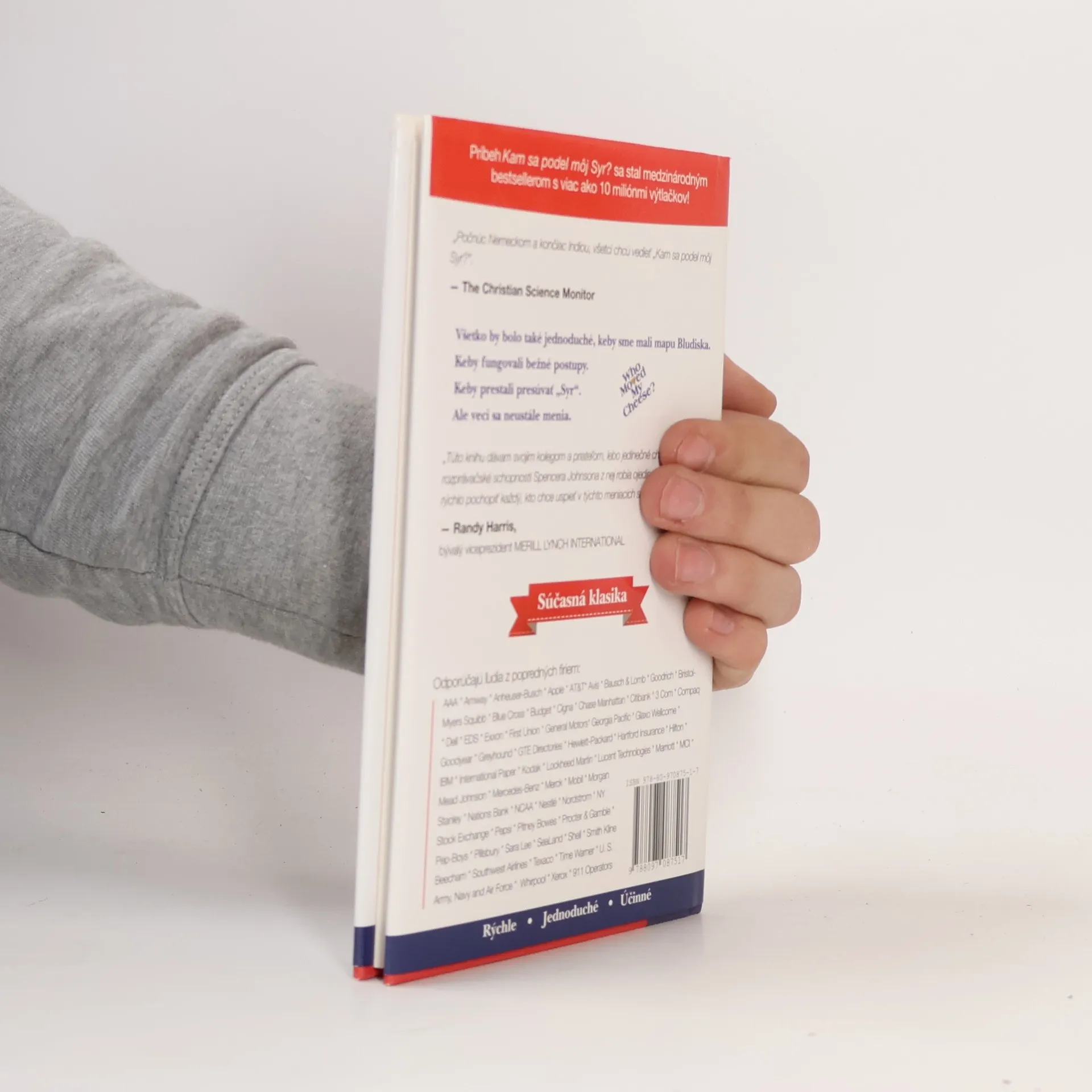 Praktická kniha Vás naučí čeliť zmenám a vyrovnať sa s nimi. V zábavnom príbehu štyri postavičky hľadajú v bludisku Syr. Syr je spodobnením toho, čo chceme v živote dosiahnuť a bludisko je miestom, kde hľadáme to, čo chceme. Túto múdru knihu využívajú zamestnanci významných svetových firiem.