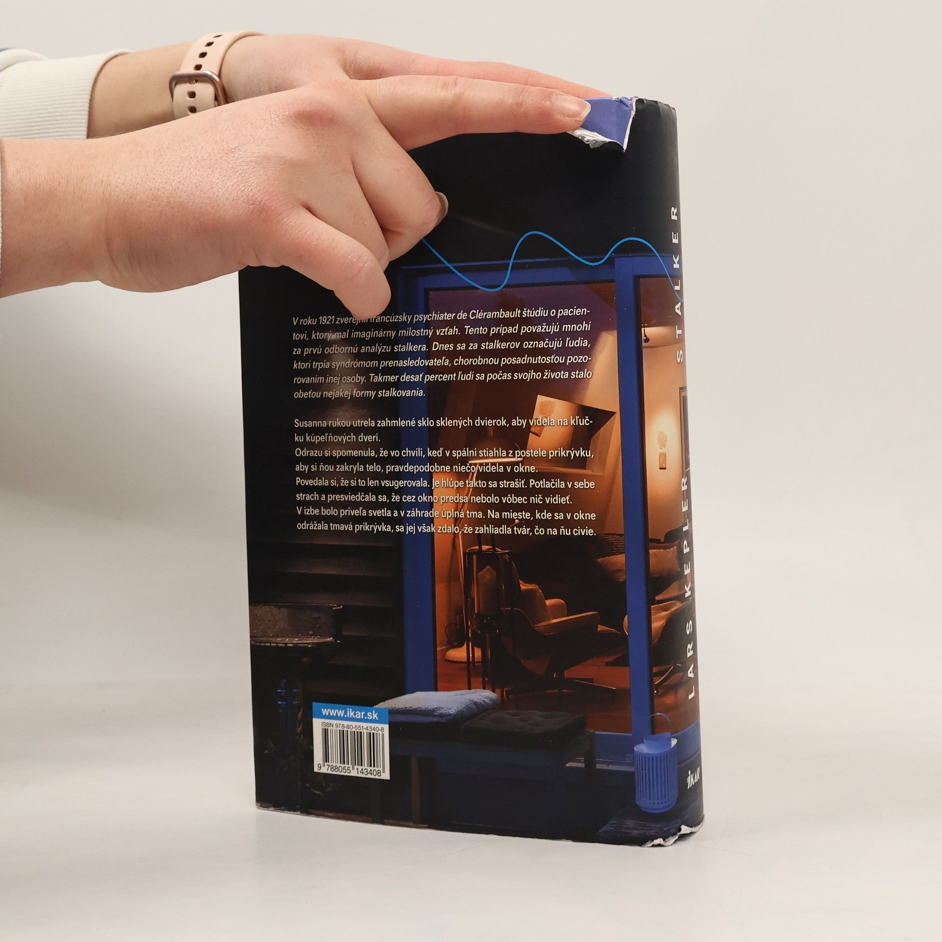 Ak sú lampy rozsvietené, môže ťa stalker vidieť zvonku, ale ak sú zhasnuté, ty neuvidíš stalkera, ktorý je už vnútri. Na e-mailovú adresu Úradu kriminálnej polície prišlo video. Niekto sa vkradol do záhrady rodinného domu a tajne nakrútil ženu cez okno. Na ďalší deň sa našlo jej telo, zomrela na následky rezných a bodných rán. Polícia dostala ďalšie video, ale neobsahovalo nijaký záchytný bod, podľa ktorého by bolo možné ženu identifikovať. A potom už bolo neskoro. Björn Kern našiel doma surovo zavraždenú manželku Susannu a utrpel takú ťažkú psychickú traumu, že vyupratoval celý dom a mŕtvu uložil do postele. Možno videl nejaký dôležitý detail, ale bol v akútnom šoku a policajti ho nemohli vypočuť. Vyšetrovatelia pri pátraní po sériovom vrahovi povolali na pomoc psychiatra a psychoterapeuta Erika Mariu Barka a ten uviedol Björna do hypnotického stavu. Lenže to, čo mu muž v hlbokom tranze porozprával, spôsobilo, že Erik sa rozhodol polícii klamať.