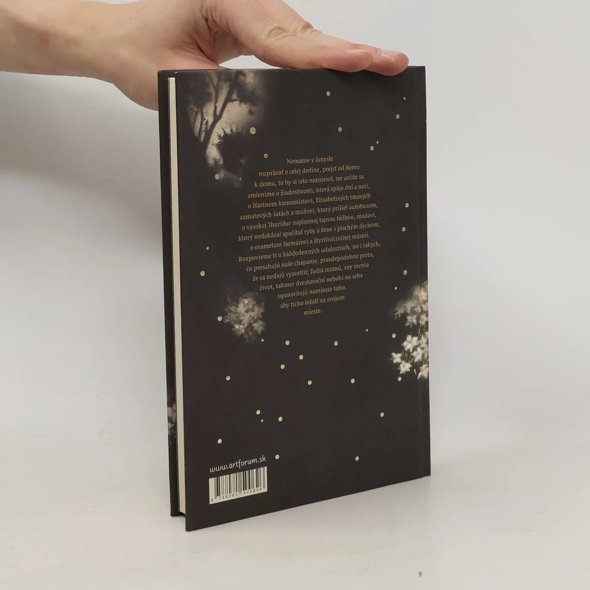 Dej sa odohráva v malej islandské dedine v deväťdesiatych rokoch dvadsiateho storočia, kde sa život riadi sezónnymi prácami a pohybmi mora. Hoci sa tu nič zásadné nedeje, vzťahy, radosti, nevera a smrť sú prepojené v príbehoch miestnych obyvateľov, zasiahnutých melanchóliou a skrytým šialenstvom. Román je plný drobných poetických príbehov a ironického zúčtovania autora s divokou dobou konca dvadsiateho storočia. Rozprávač, možno kolektívne vedomie dediny, pozná všetko, čo sa deje, a s múdrosťou komentuje životy malých ľudí. Bez sentimentu kladie otázky o smrti, živote, vášni a láske. "Čas plynie, žijeme a potom umierame. Ale čo je vôbec život? Je to Jónas mysliaci na zaoblené vtáčie krídla, Jónas, ktorého uspáva Thorgrímovo hlboké dýchanie. A aký je odstup medzi životom a smrťou? Je medzi nimi vôbec nejaký odstup, a ak áno, ako sa nazýva? Merali by sme ho v kilometroch či myšlienkach, a dokáže sa cezeň niekto dostať - prejsť na druhú stranu a vrátiť sa späť?" Úryvok z básne H. Péturssona prebásnila M. Haugová.