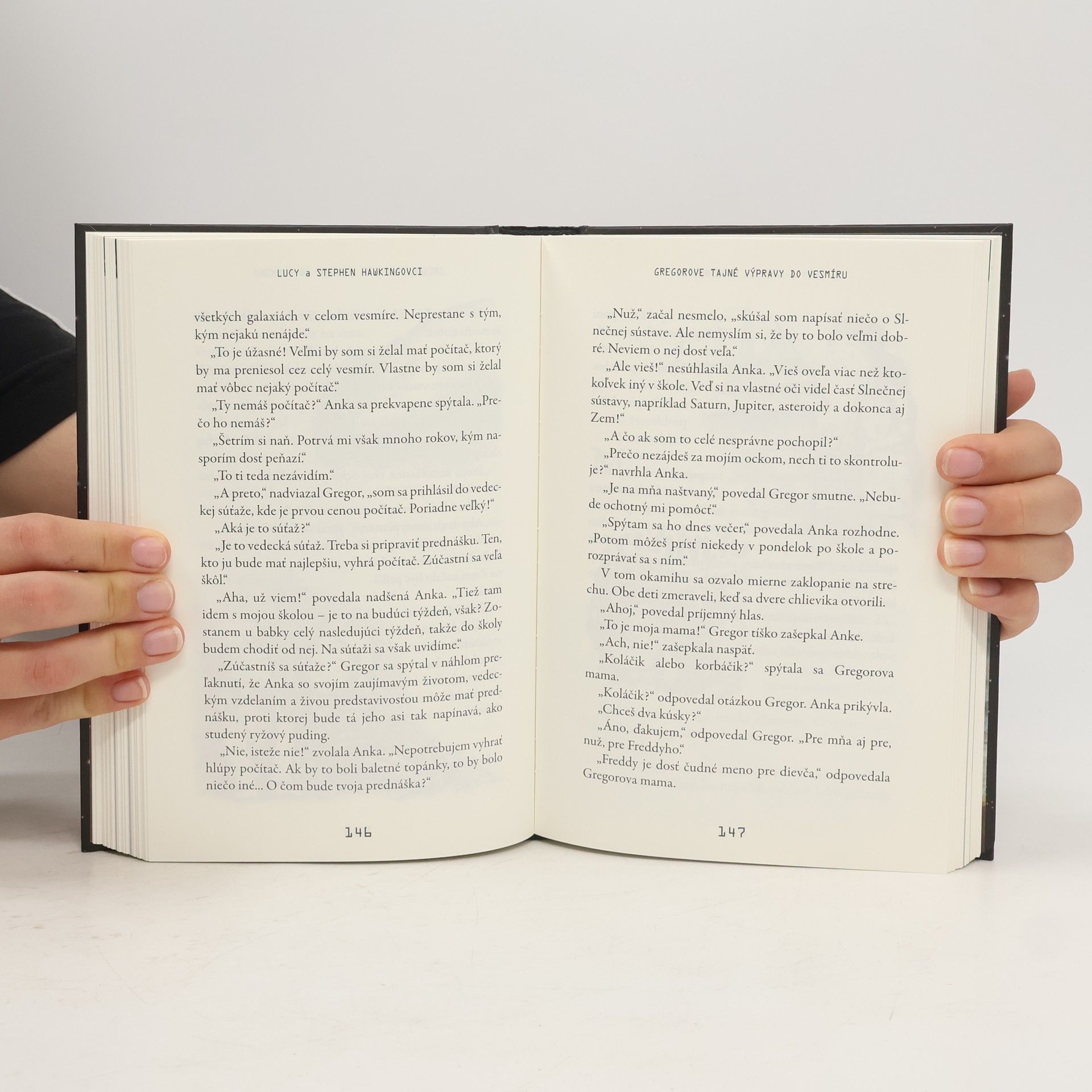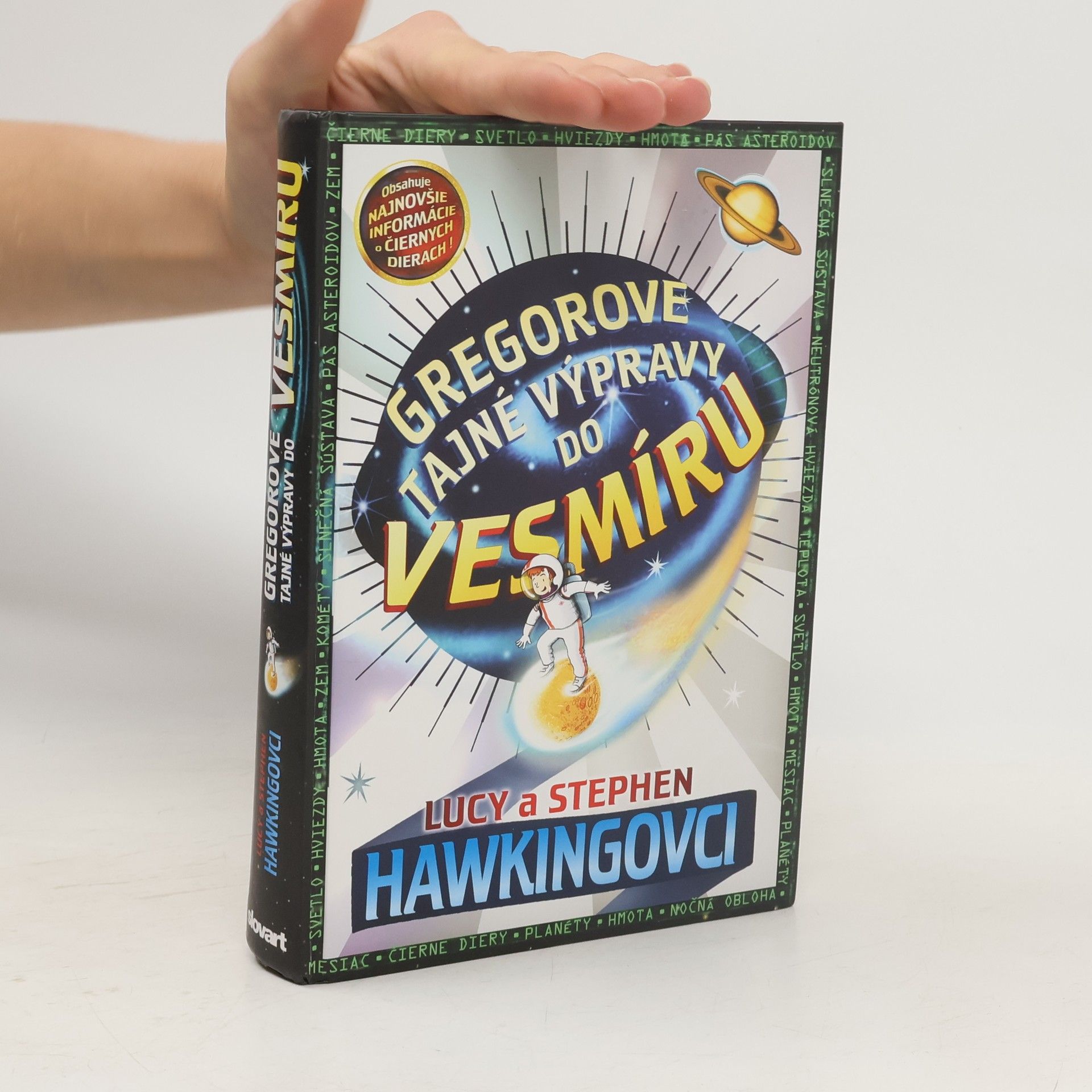 Kniha, ktorú spolu napísali svetoznámy astronóm Stephen Hawking a jeho dcéra Lucy, kombinuje napínavý a zábavný príbeh s množstvom zaujímavých faktov o vesmíre vrátane najnovších poznatkov Stephena Hawkinga o čiernych dierach. Keď Gregor hľadá svoje domáce prasiatko v susednej záhrade, stretne nových susedov Annu a jej otca Erika, ktorý je uznávaný vedec. Otvoria sa mu dvere do celkom nového sveta. Do sveta, kde sa dá na svet pozerať z iného pohľadu – z vesmíru.