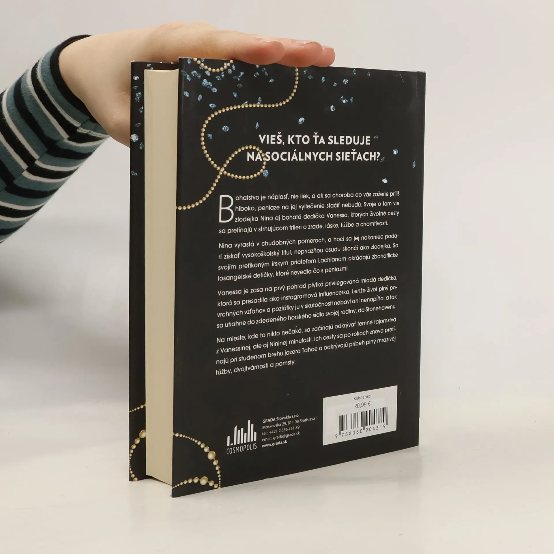 Vieš, kto ťa sleduje na sociálnych sieťach? Bohatstvo je náplasť, nie liek a ak sa choroba do vás zažerie príliš hlboko, peniaze na jej vyliečenie stačiť nebudú. Svoje o tom vie zlodejka Nina aj bohatá dedička Vanessa, ktorých životné cesty sa pretínajú v strhujúcom trileri o zrade, láske, túžbe a chamtivosti. Nina vyrastá v chudobných pomeroch a hoci sa jej nakoniec podarí získať vysokoškolský titul, nepriazňou osudu skončí ako zlodejka. So svojím prefíkaným írskym priateľom Lachlanom okrádajú zbohatlícke losangelské detičky. Vanessa je zasa na prvý pohľad plytká privilegovaná mladá dedička, ktorá sa presadila ako instagramová influencerka. Lenže život plný plytkých vzťahov a pozlátka ju v skutočnosti nebaví, ani nenapĺňa, a tak sa utiahne do zdedeného horského sídla svojej rodiny, do Stonehavenu. Na mieste, kde to nikto nečaká, sa začínajú odkrývať temné tajomstvá z Vanessinej, ale aj Nininej minulosti. Ich cesty sa po rokoch znova pretínajú pri studenom brehu jazera Tahoe, a odkrývajú príbeh plný mrazivej túžby, dvojtvárnosti a pomsty.