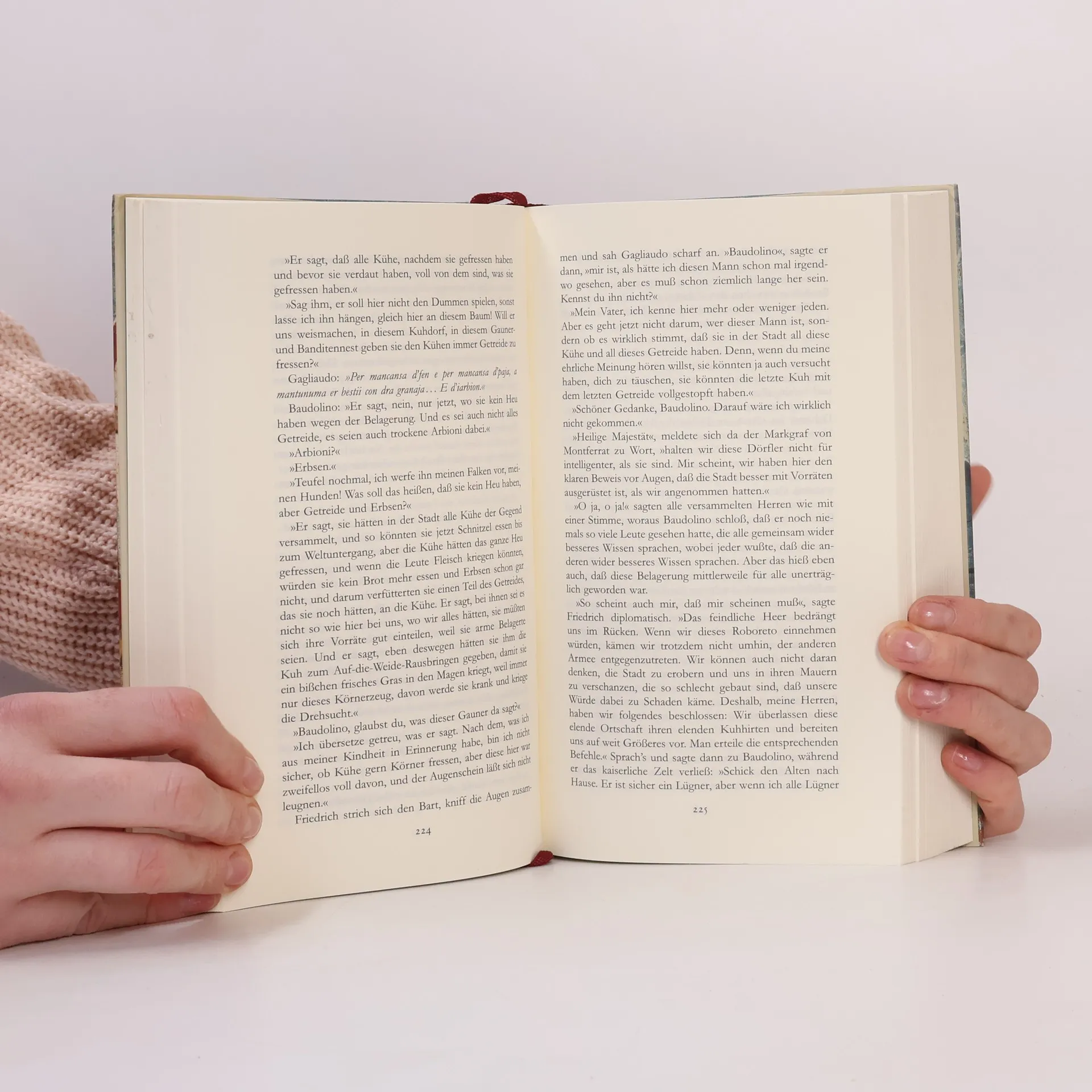Wir befinden uns im 12. Jahrhundert, zur Zeit der Kreuzzüge. Baudolino, ein gewitzter Bauernsohn aus dem Piemont, wird Adoptivsohn des Kaisers Friedrich I. Barbarossa. Den Kopf voller Flausen, Phantasien und Lügen, lenken seine irrwitzigen Ideen von nun an den Lauf der Weltgeschichte. Von den Liebesbriefen an die Kaiserin, den undurchsichtigen Machenschaften bei der Belagerung Alessandrias und dem rätselhaften Tod Barbarossas gar nicht zu reden ...