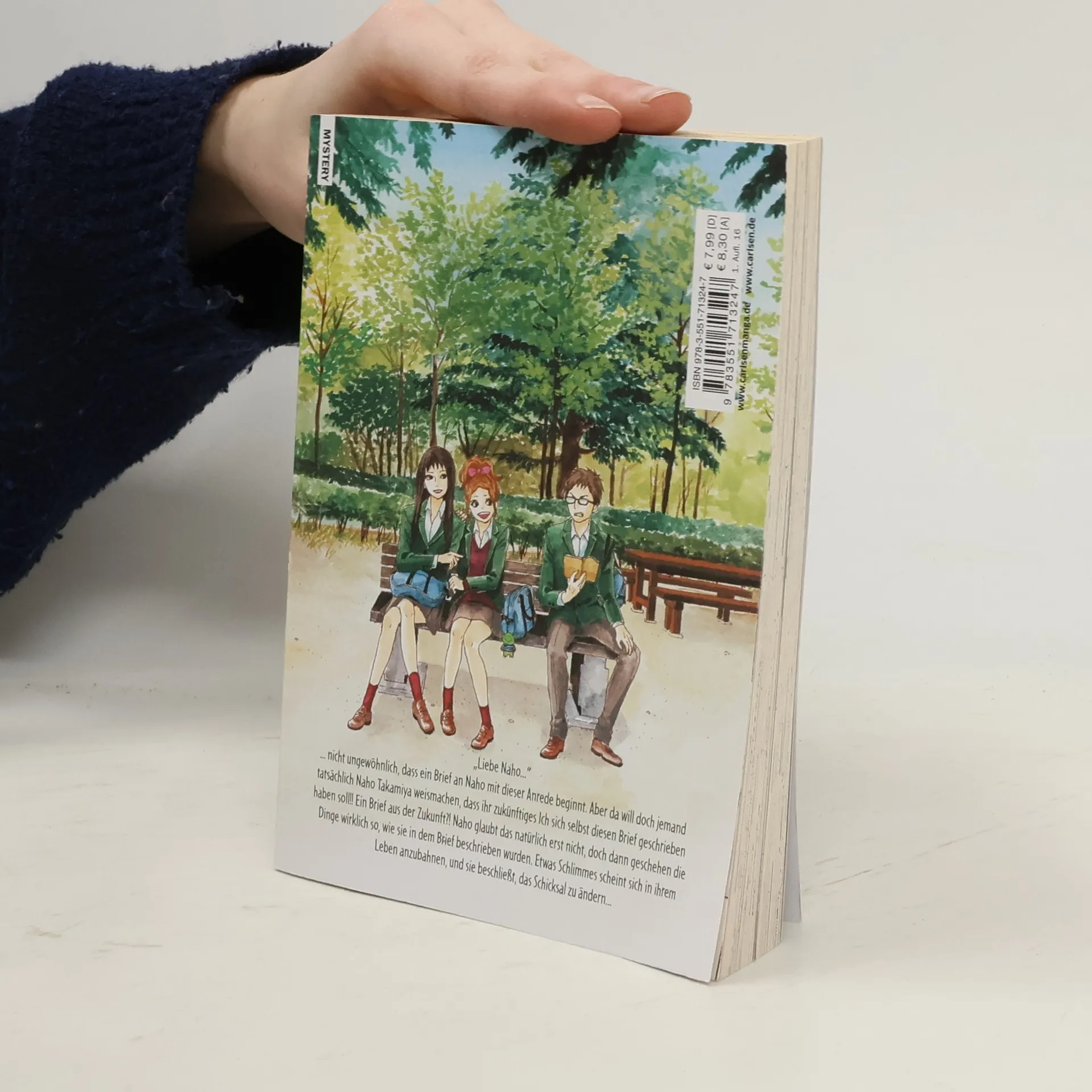 Briefe in die Vergangenheit... „Liebe Naho...“ ... nicht ungewöhnlich, dass ein Brief an Naho mit dieser Anrede beginnt. Aber da will doch jemand tatsächlich Naho Takamiya weismachen, dass ihr zukünftiges Ich sich selbst diesen Brief geschrieben haben soll!! Ein Brief aus der Zukunft?! Naho glaubt das natürlich erst nicht, doch dann geschehen die Dinge wirklich so, wie sie in dem Brief beschrieben wurden. Etwas Schlimmes scheint sich in ihrem Leben heranzubahnen, und sie beschließt, das Schicksal zu ändern... Mit Gratis-Postkarte als Beilage, nur in der 1. Auflage! Eine berührende Coming-of-Age Story über gegenseitige Fürsorge und Achtsamkeit, die ihre Leser*innen direkt ins Herz trifft! Weitere Informationen: - Für Manga-Fans und -Neulinge ab 14 Jahren - Auch bekannt aus dem beliebten Anime auf Crunchyroll - Abgeschlossen in sieben Bänden