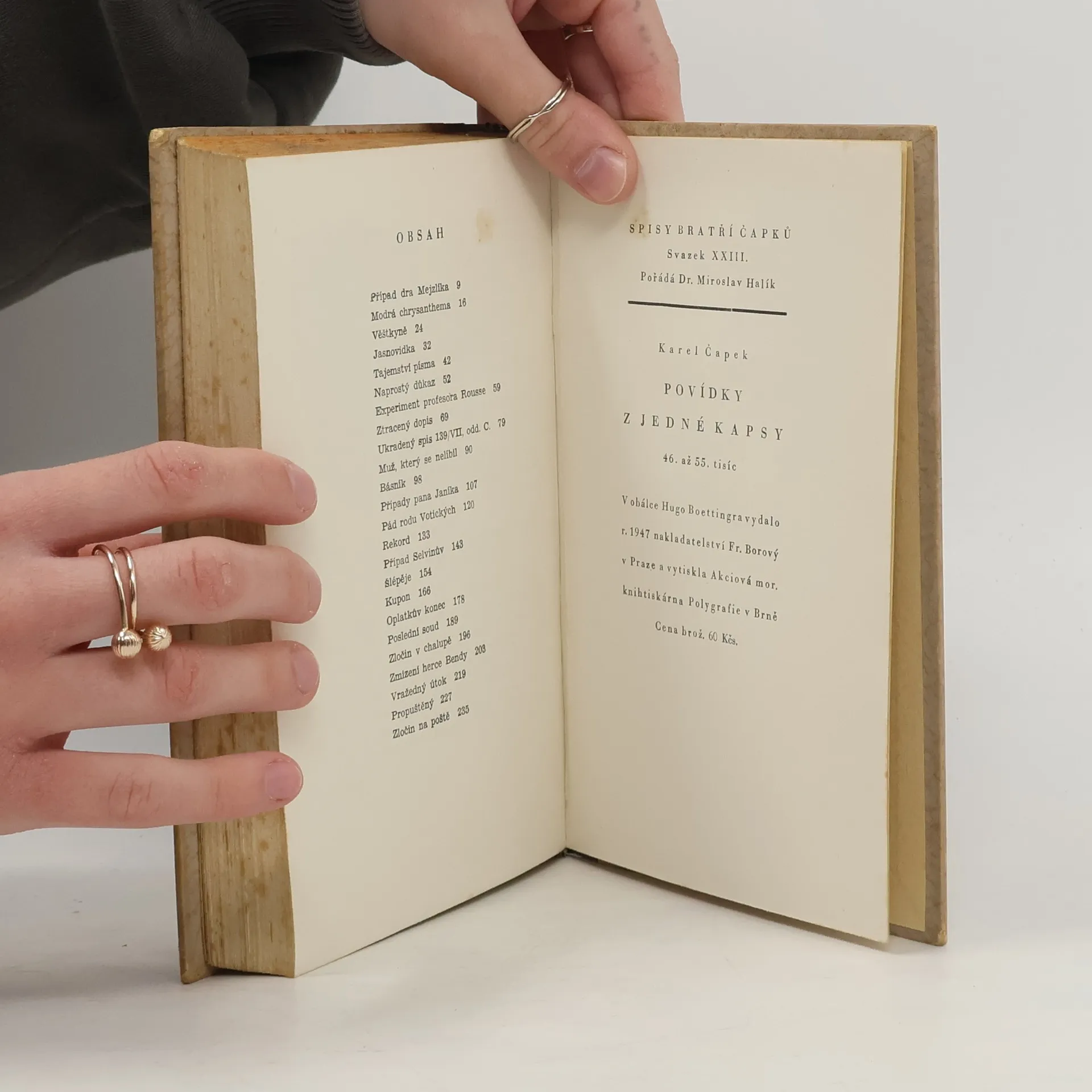 Sborník detektivních povídek z pera Karla Čapka patří ke skvostům české moderní prózy a právem náleží do zlatého fondu české literatury. Příběhy s kriminální zápletkou autor povýšil na studie člověčenství, které dokáží vždy překvapit a zaujmout. Náměty povídek jsou natolik originální, že byly mnohokrát použity pro filmové zpracování. Klasická díla Karla Čapka jsou ozdobou každé knihovny.