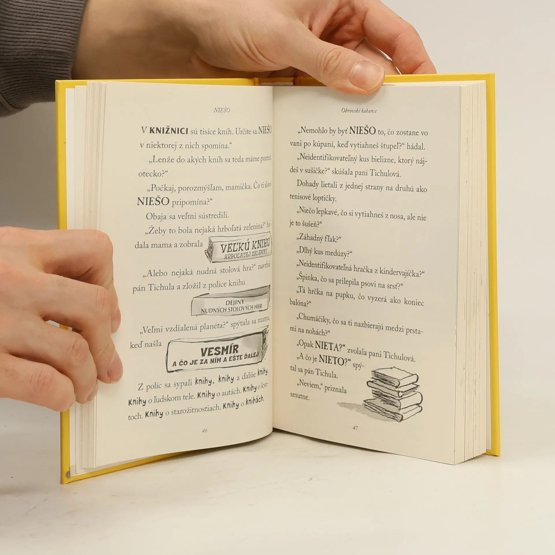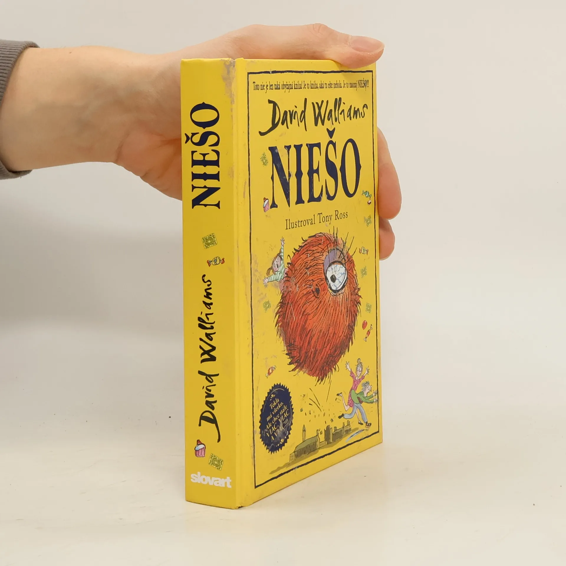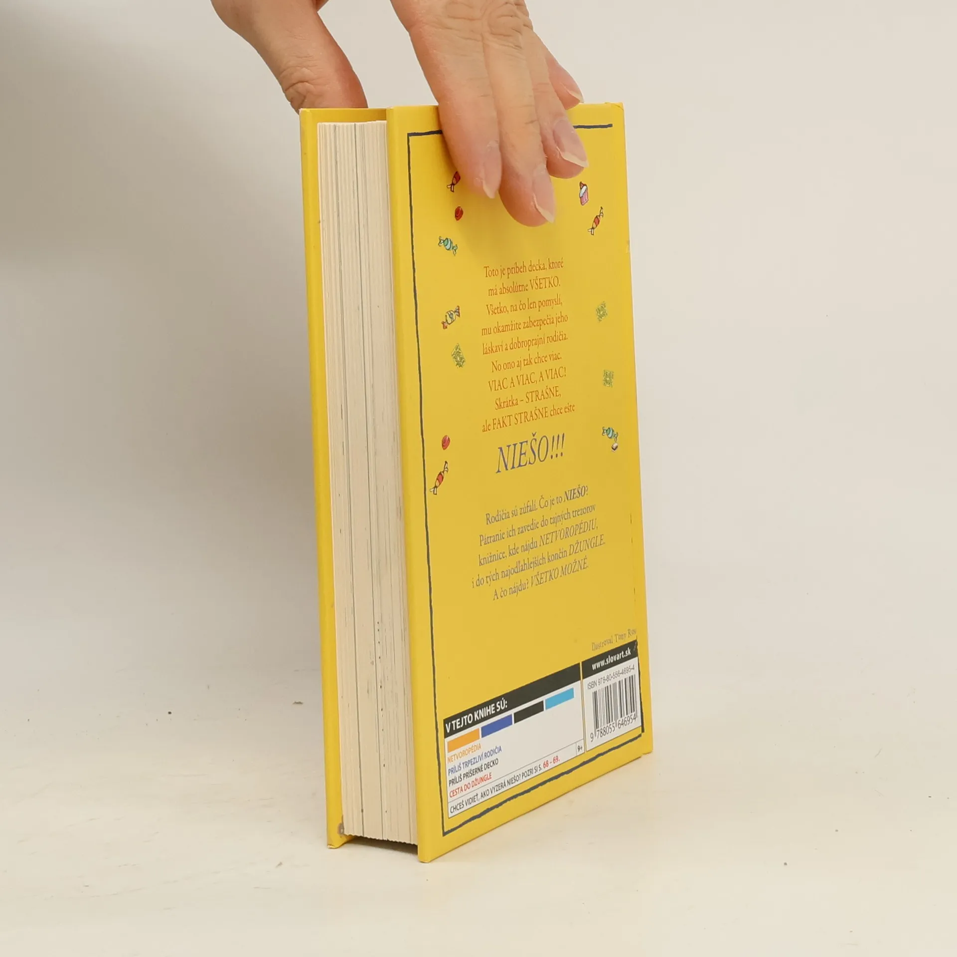 Svetoznámy britský komik a autor detských bestsellerov David Walliams už napísal množstvo skvelých kníh o neposlušných, zlostných, papuľnatých, drzých, nadutých a rozmaznaných deťoch, dokonca aj o tých, čo sú fakt najhoršie na svete. Ale toto tu ešte nebolo! Vymyslel príbeh decka, ktoré má absolútne všetko. Všetko, na čo len pomyslí, mu okamžite zabezpečia jeho láskaví a dobroprajní rodičia. No ono aj tak chce viac. Viac a viac, a viac! Skrátka – strašne chce, ale fakt strašne chce ešte NIEŠO! Rodičia sú zúfalí. Čo je to NIEŠO? Pátranie ich zavedie do tajných trezorov knižnice, kde nájdu Netvoropédiu, i do tých najodľahlejších končín džungle. A čo nájdu? Všetko možné. Tak to poďte hľadať s nimi. Len pozor, aby ste pritom neexplodovali od smiechu!