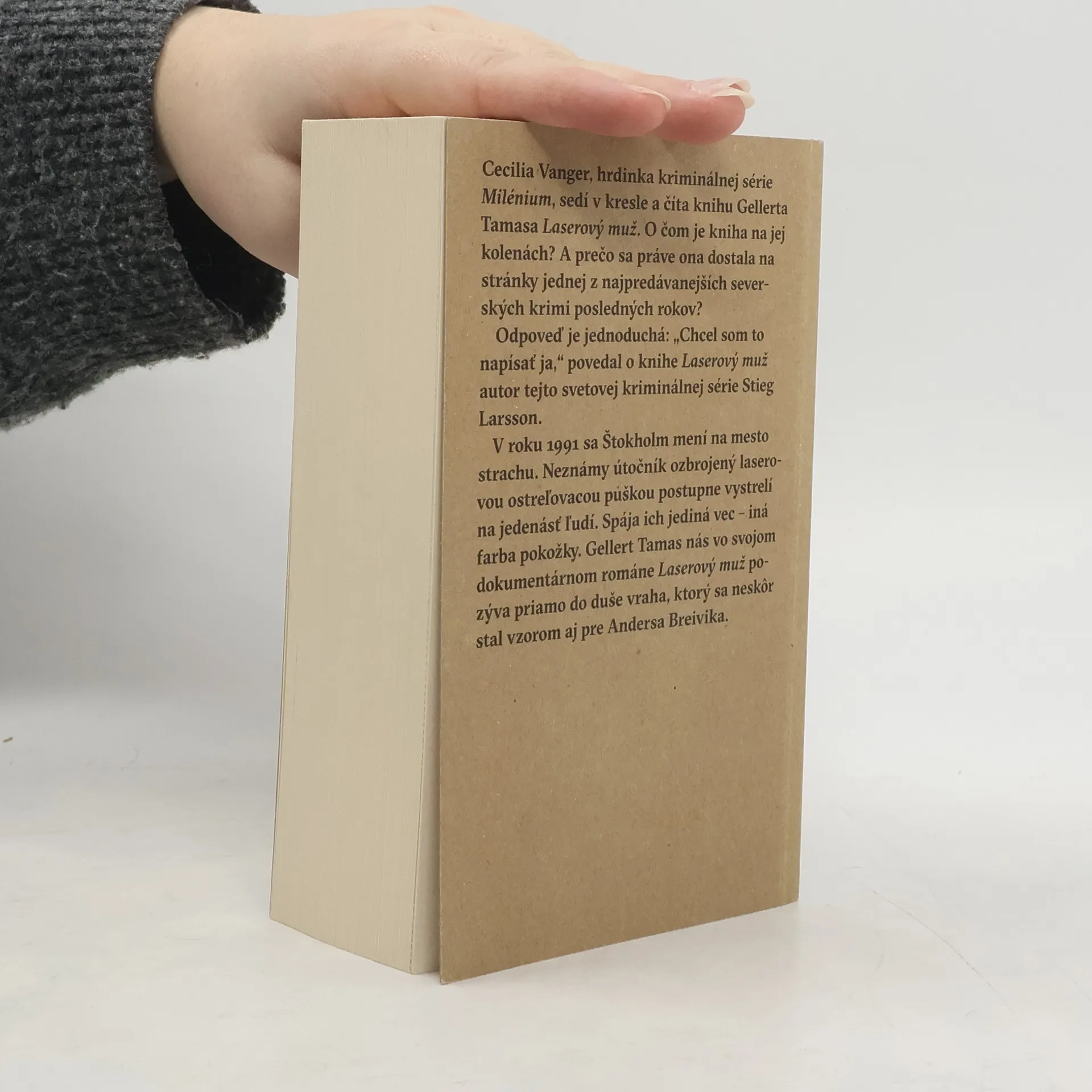 Cecilia Vanger, hlavná hrdinka trilógie Milénium Stiega Larssona sedí v kresle a číta knihu Gellerta Tamasa Laserový muž. O čom je kniha na jej kolenách? Píše sa rok 1991 a Štokholm sa mení na mesto strachu. Neznámy útočník ozbrojený laserovou ostreľovacou puškou postupne vystrelí na jedenásť ľudí. Spája ich jediná vec – iná farba pokožky. Gellert Tamas vás pozýva priamo do duše vraha.
