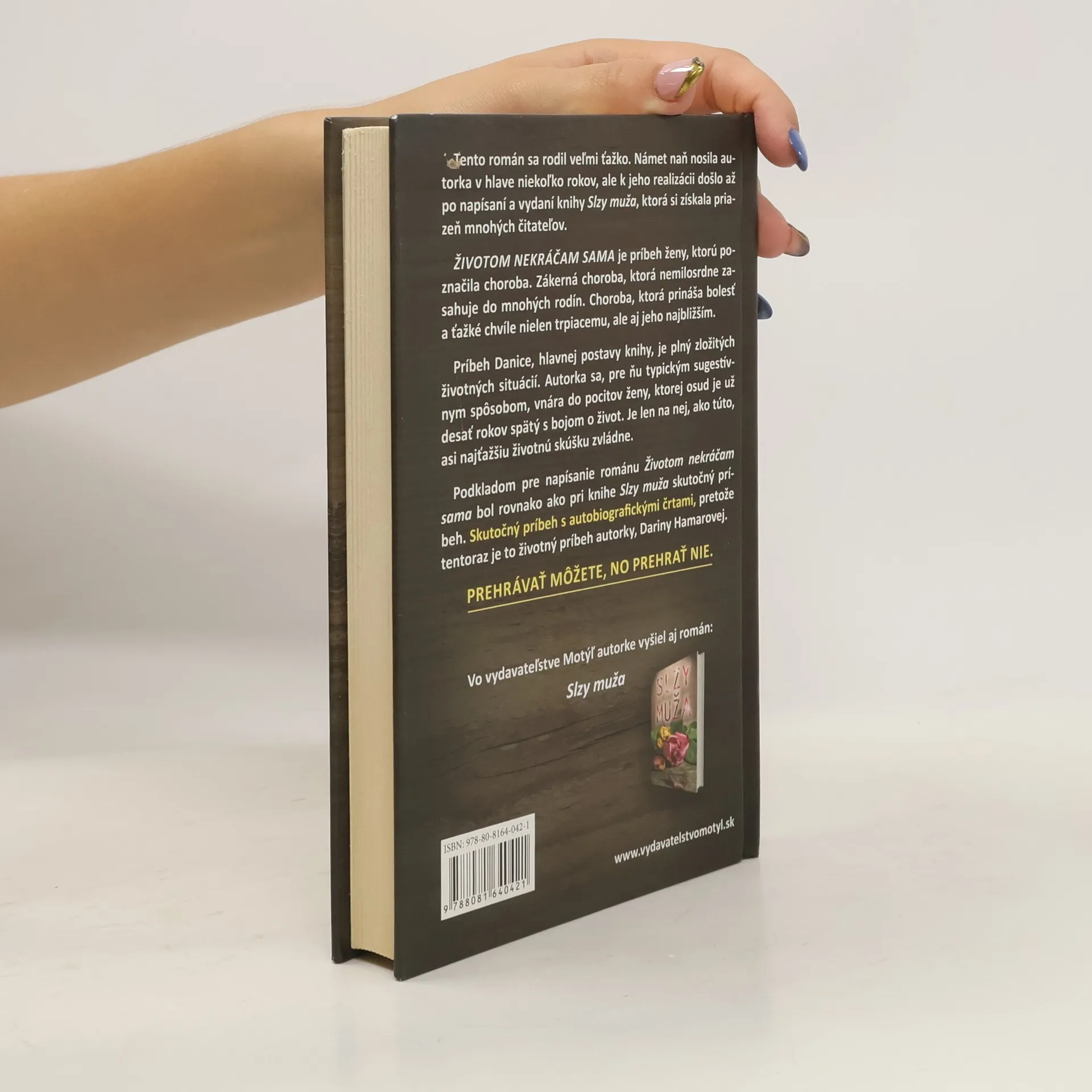 Príbeh Danice, hlavnej postavy knihy, je plný zložitých životných situácií. Autorka sa, pre ňu typickým sugestívnym spôsobom, vnára do pocitov ženy, ktorej osud je už desať rokov spätý s bojom o život. Je len na nej, ako túto, asi najťažšiu životnú skúšku zvládne. Podkladom pre napísanie románu Životom nekráčam sama bol rovnako ako pri knihe Slzy muža skutočný príbeh. Skutočný príbeh s autobiografickými črtami, pretože tentoraz je to životný príbeh autorky, Dariny Hamarovej.