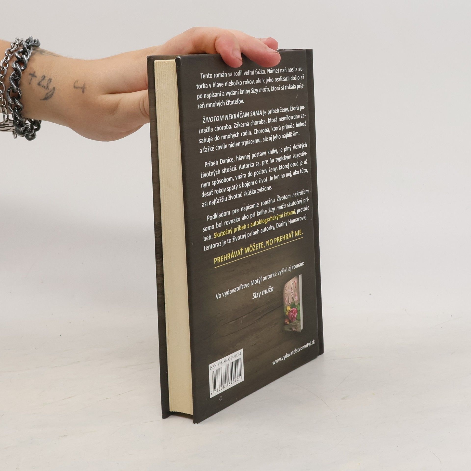 Príbeh Danice, hlavnej postavy knihy, je plný zložitých životných situácií. Autorka sa, pre ňu typickým sugestívnym spôsobom, vnára do pocitov ženy, ktorej osud je už desať rokov spätý s bojom o život. Je len na nej, ako túto, asi najťažšiu životnú skúšku zvládne. Podkladom pre napísanie románu Životom nekráčam sama bol rovnako ako pri knihe Slzy muža skutočný príbeh. Skutočný príbeh s autobiografickými črtami, pretože tentoraz je to životný príbeh autorky, Dariny Hamarovej.