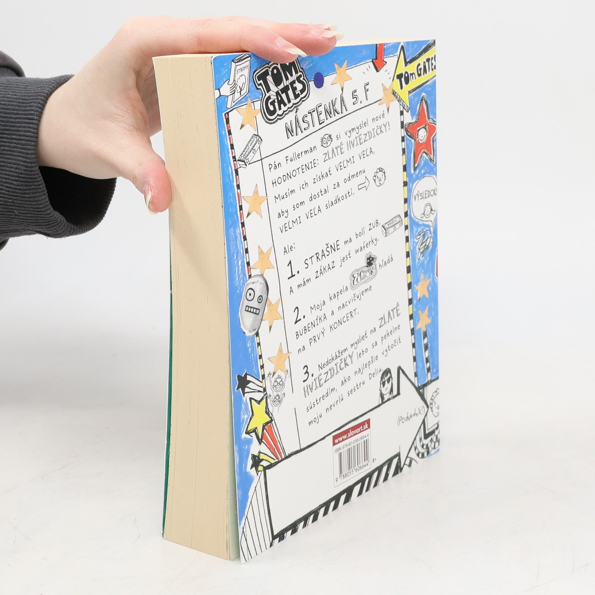 Druhé pokračovanie úplne šialených nápadov Toma Gatesa. Aj na túto knihu platí upozornenie: NAJVTIPNEJŠIE, ČO TU KEDY BOLO! Tom má dva týždne prázdnin, a teda aj hromadu času na životne dôležité veci. Hurá! Môže zabudnúť na školu a otravného Marcusa Meldrewa a využiť všetku svoju energiu na podstatné veci. Veci ako: vymýšľanie nových spôsobov, ako vytočiť svoju staršiu sestru Deliu, skúšanie v kapele Psie príšery – rodiacej sa hviezde rockového neba, pozeranie telky a jedenie karamelových tyčiniek. Skvelé! Nad Tomovou pohodou sa však zbierajú mračná v podobe jeho divnej staršej sestry Delie. Keď jeho geniálne plány skrížia nečakané problémy, musí vytiahnuť tie najlepšie zo svojich výhovoriek. Tento hysterický denník plný čmáraníc, čarbaníc, príbehov a vtipov prináša viac chaotického šialenstva z bláznivého sveta Toma Gatesa.