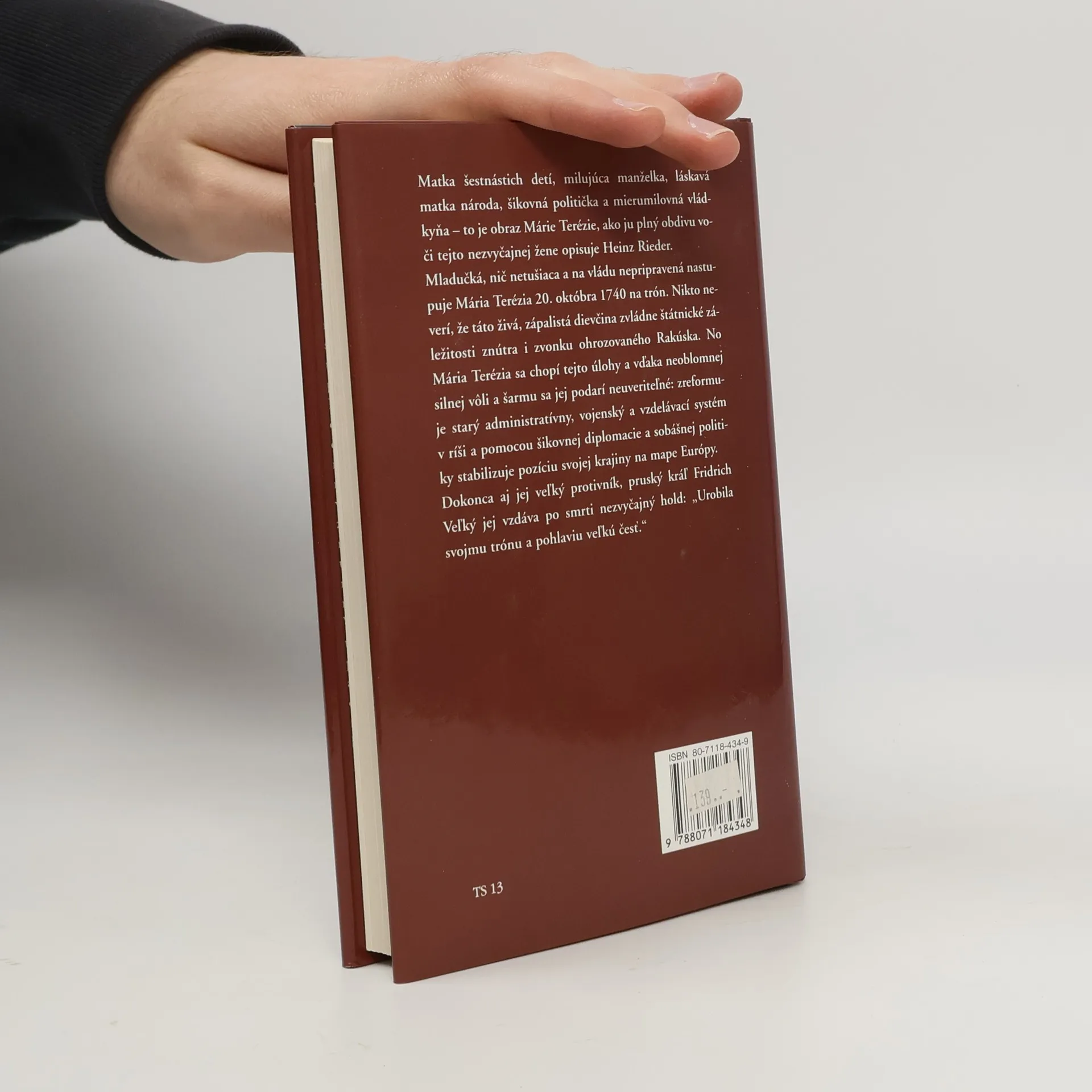 Matka šestnástich detí, milujúca manželka, láskavá matka národa, šikovná politička a mierumilovná vládkyňa? to je obraz Márie Terézie, ako ju plný obdivu voči tejto nezvyčajnej žene opisuje Heinz Rieder. Mladučká, nič netušiaca a na vládu nepripravená nastupuje Mária Terézia 20. októbra 1740 na trón. Nikto neverí, že táto živá, zápalistá dievčina zvládne štátnické záležitosti znútra i zvonku ohrozovaného Rakúska. No Mária Terézia sa chopí tejto úlohy a vďaka neoblomnej silnej vôli a šarmu sa jej podarí neuveriteľné: zreformuje starý administratívny, vojenský a vzdelávací systém v ríši a pomocou šikovnej diplomacie a sobášnej politiky stabilizuje pozíciu krajiny na mape Európy. Dokonca aj jej veľký protivník pruský kráľ Friedrich Veľký jej vzdáva po smrti nezvyčajný hold: „Urobila svojmu trónu a pohlaviu veľkú česť.“