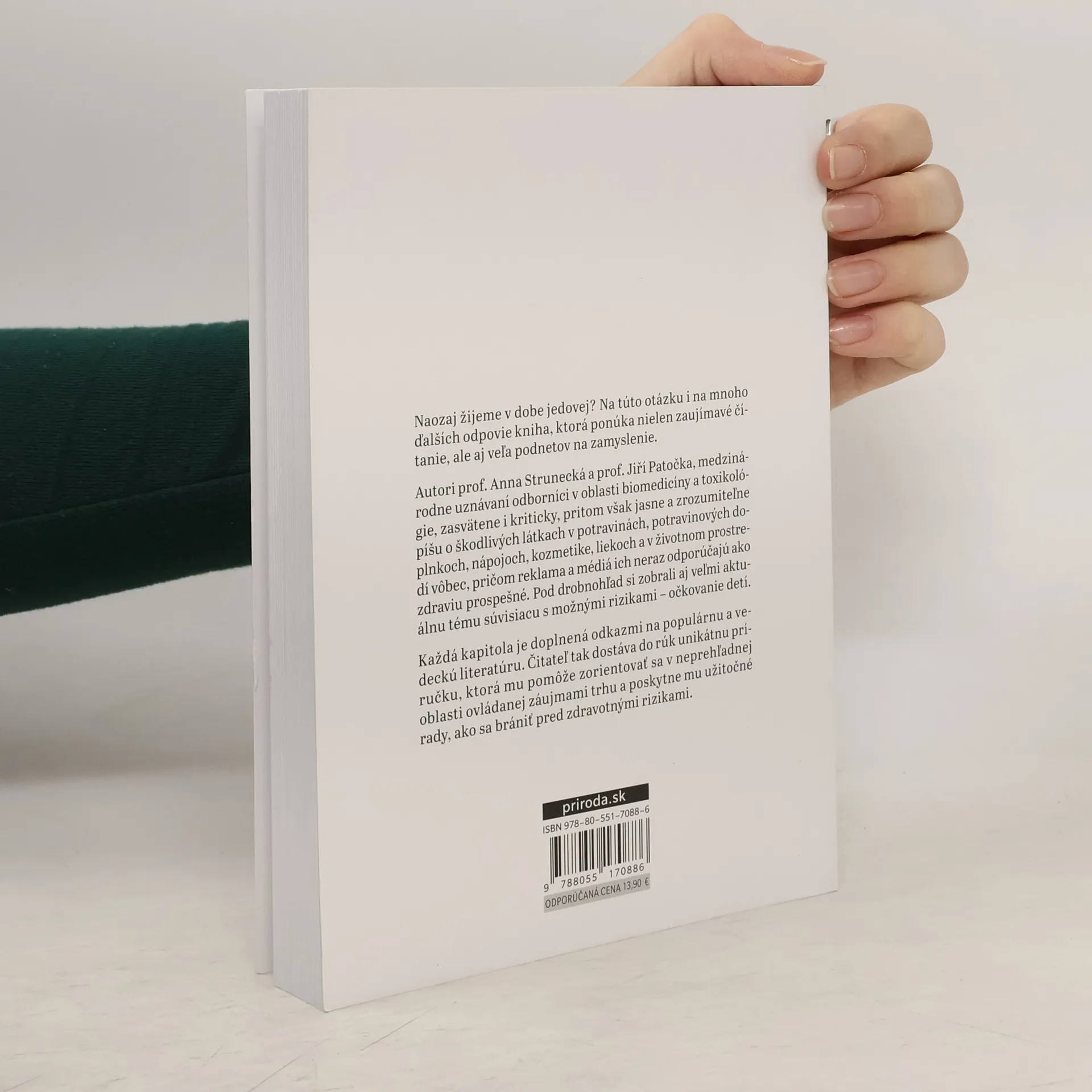 Naozaj žijeme v dobe jedovej? Na túto otázku i mnoho ďalších vám odpovie kniha, ktorá vám ponúka nielen zaujímavé čítanie, ale aj veľa podnetov na zamyslenie. Autori prof. Anna Strunecká a prof. Jiří Patočka, medzinárodne uznávaní odborníci v oblasti biomedicíny a toxikológie, zasvätene i kriticky, pritom však jasne a zrozumiteľne píšu o škodlivých látkach v potravinách, potravinových doplnkoch, nápojoch, kozmetike, liekoch a v životnom prostredí vôbec, pričom reklama a médiá ich neraz odporúčajú ako zdraviu prospešné. Pod drobnohľad si zobrali aj veľmi aktuálnu tému súvisiacu s možnými rizikami – očkovanie detí.Každá kapitola je doplnená odkazmi na populárnu a vedeckú literatúru. Čitateľ tak dostáva do rúk unikátnu príručku, ktorá mu pomôže zorientovať sa v neprehľadnej oblasti ovládanej záujmami trhu a poskytne mu užitočné rady, ako sa brániť pred zdravotnými rizikami.Z českého originálu Doba jedová (vydavateľstvo Triton, Praha 2011) preložila PhDr. Zora Špačková