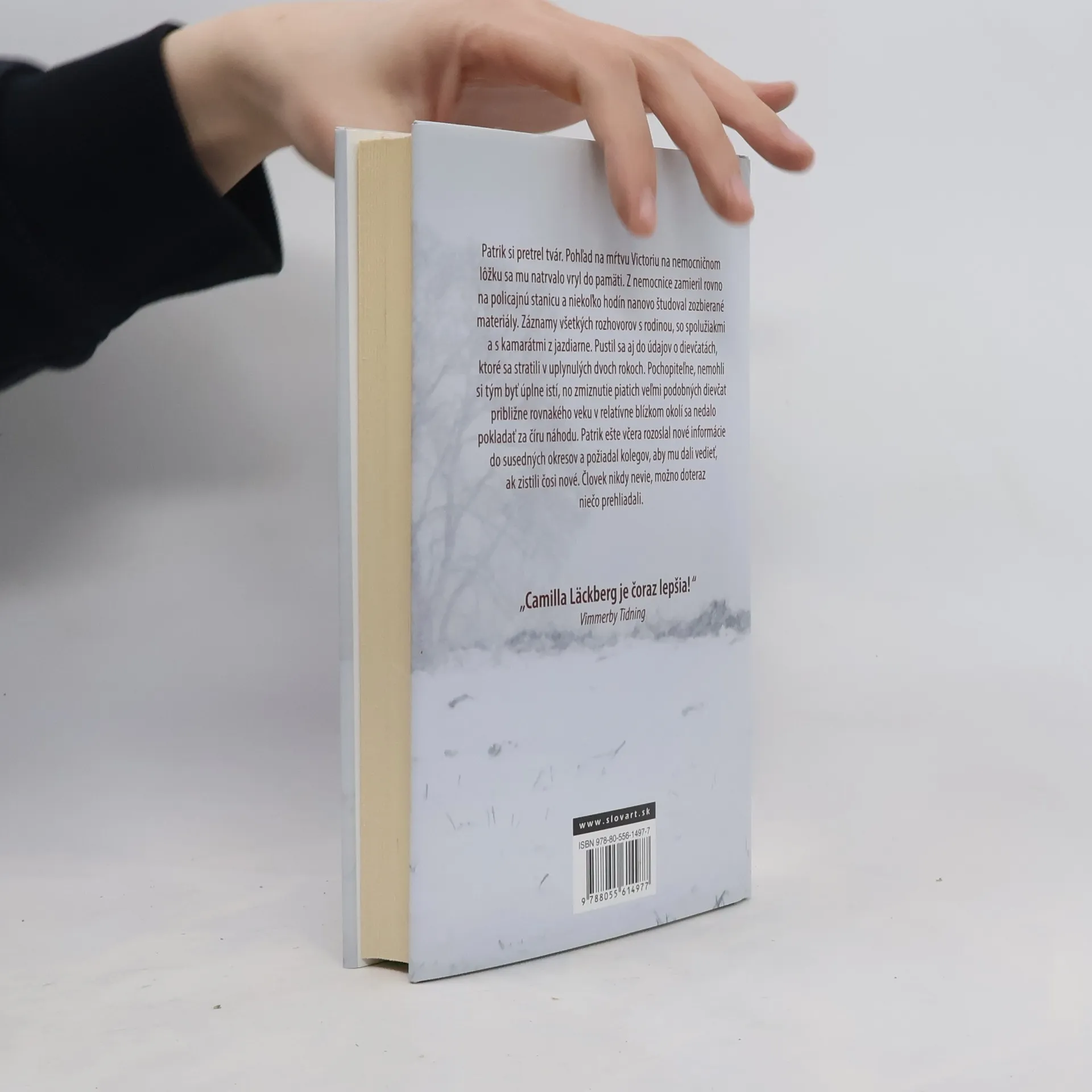 Camilla Läckberg vyštudovala ekonómiu a spočiatku v tomto odbore pracovala. Vždy sa však túžila stať spisovateľkou a dnes sa radí medzi najúspešnejšie švédske autorky krimi románov. Je január a Fjällbacku drží v zovretí tuhý mráz. Cez zasnežený les sa k hradskej potáca polonahé dievča. Na ceste sa však ako blesk z jasného neba vynorí auto a šofér nestíha zabrzdiť. Keď Patrik Hedström a jeho kolegovia dostanú správu o nešťastí, dievča je už identifikované. Zmizlo pred štyrmi mesiacmi cestou z tamojšej jazdeckej školy a odvtedy ho nikto nevidel. Podľa výsledkov pitvy bola dievčina vystavená mučeniu, a ak polícia prípad rýchlo neobjasní, hrozí, že podobný osud čaká aj iné mladé ženy. Zdroj: slovart.sk