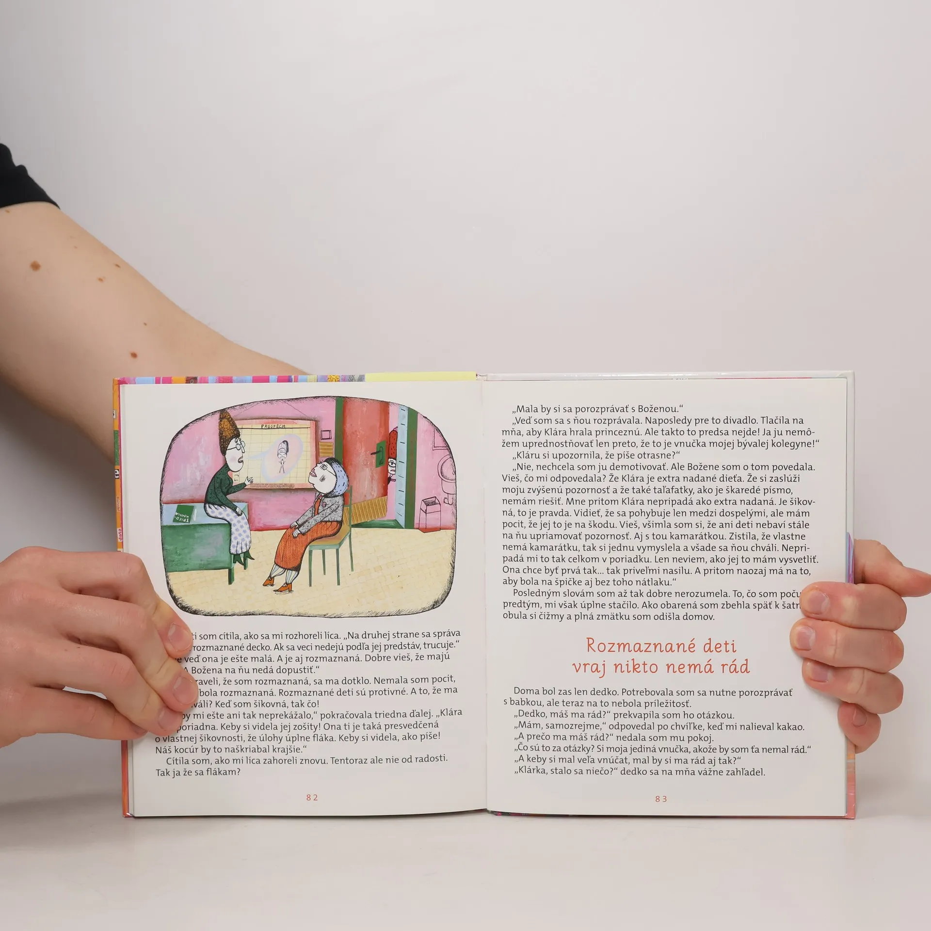 Väčšina detí prichádza do prvej triedy s obavami, aké to tam bude, či to zvládnu, či bude pani učiteľka dobrá... Ale to sa netýka Kláry. Klára má babku učiteľku, svoju školu už pozná, pozná aj učiteľky, lebo sa stretávajú s babkou, ba vie už aj čítať. V škole je preto suverénna a svoju prevahu dáva všetkým najavo. Zrazu však zažije veľké prekvapenie - zistí, že aj iné deti sú šikovné, ba môžu byť aj šikovnejšie, a to Kláru vyburcuje k zúrivému súťaženiu a porovnávaniu.
