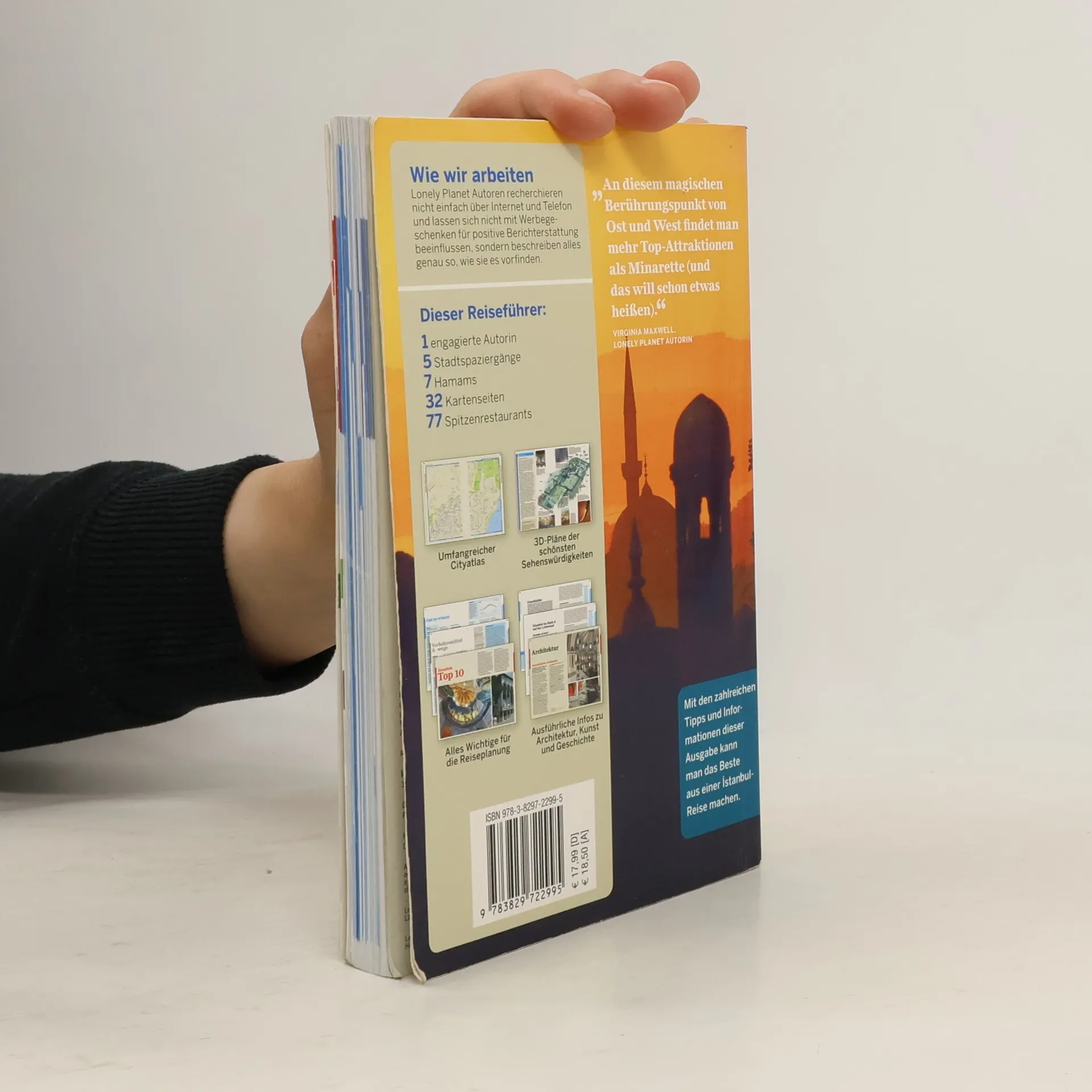 Aktualisierte, umgestaltete und umgearbeitete Auflage des Stadtführers für Istanbul (zuletzt BA 12/08) aus der eingeführten Reihe: um 10 Seiten gekürzt, mit modernem Coverfoto, ohne Hochglanzseiten, farbiges Inhaltsverzeichnis übersichtlicher gestaltet, gröe︢re Schrifttypen, mit farbigen 3-dimensionalen Plänen. Die vorliegende Auflage ist die Übersetzung der 7. englischsprachigen Auflage "Lonely Planet Istanbul" (Stand Februar 2013). Elke Nibbrig schrieb zur 1. deutschen Ausgabe (BA 12/08): "Faktenreich, interessant und locker geschrieben in der reihenüblichen, handbuchartigen Aufmachung mit Detailplänen ... ". Der Stadtplan ist in dieser Ausgabe eingeklebt. Ältere Auflagen sollten wegen der vollständigen Umarbeitung ausgetauscht werden. Neben den Stadtführern von Andrea Gorys: "Istanbul" (DuMont-Reise-Taschenbuch; ID-A 23/13), Gabriele Tröger (M. Müller, "MM-City"; ID-A 18/13) und aus der Baedeker-Reihe (ID-A 12/13) für Individualreisende empfohlen. (2)