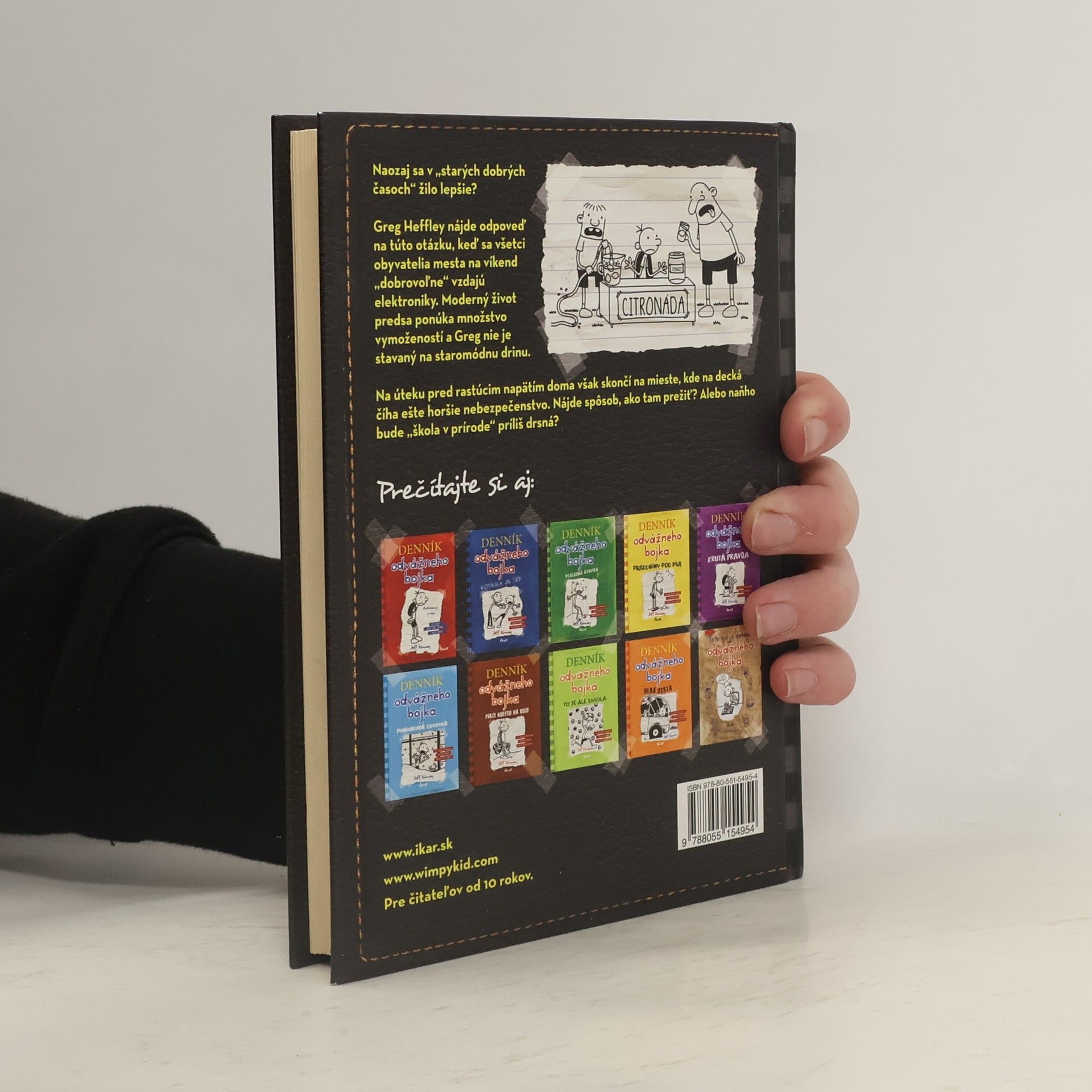 Séria: Denník odvážneho bojka 10. Naozaj sa v „starých dobrých časoch“ žilo lepšie? Greg Heffley nájde odpoveď na tú otázku, keď sa všetci obyvatelia mesta na víkend „dobrovoľne“ vzdajú elektroniky. Moderný život predsa ponúka množstvo vymožeností a Greg nie je stavaný na staromódnu drinu. Na úteku pred rastúcim napätím doma však skončí na mieste, kde na decká číha ešte horšie nebezpečenstvo. Nájde spôsob, ako tam prežiť? Alebo naňho bude „škola v prírode“ príliš drsná?