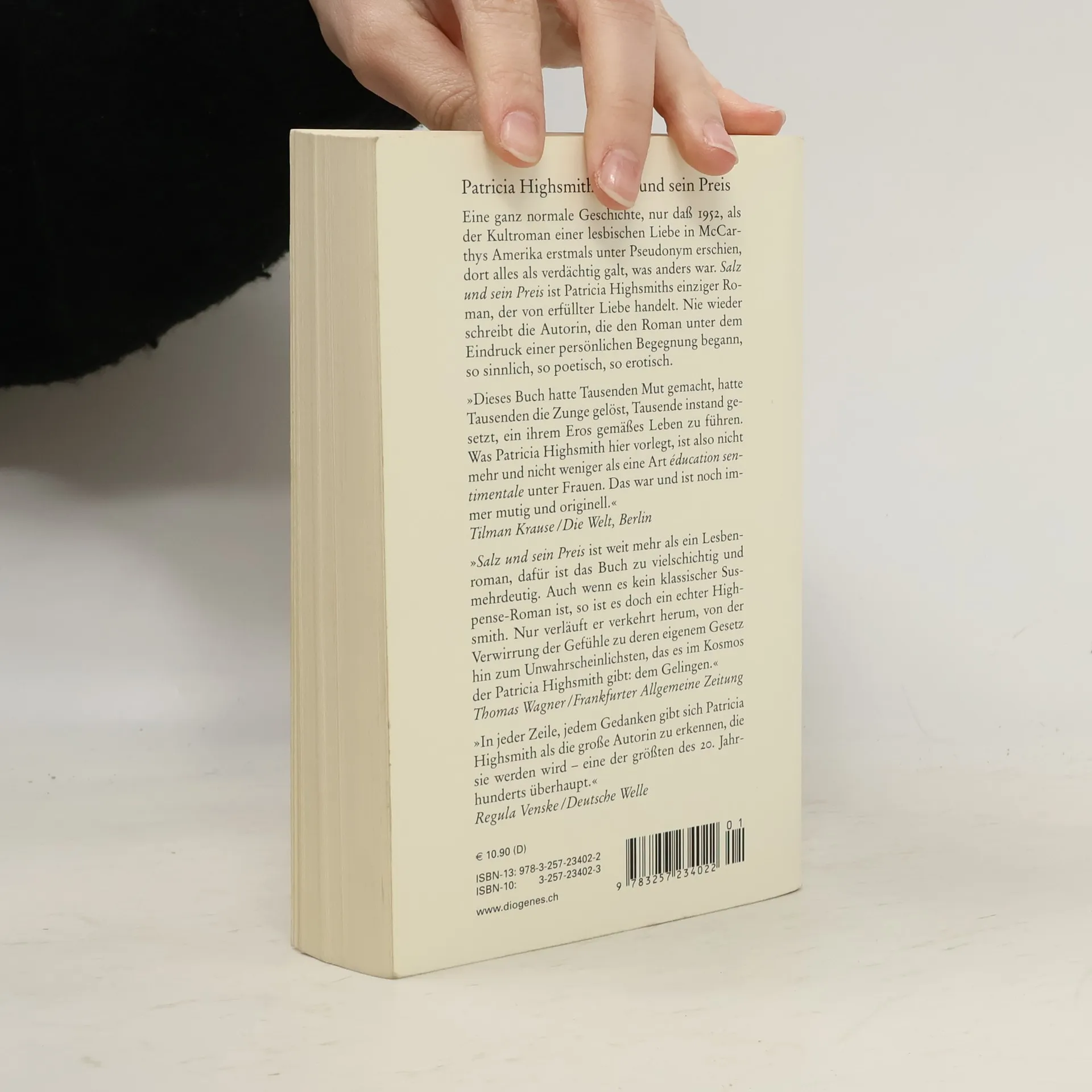 Eine ganz normale Geschichte, nur dass 1952, als der Kultroman einer lesbischen Liebe in McCarthys Amerika erstmals unter Pseudonym erschien, dort alles als verdächtig galt, was etwas anders war: Zwei Frauen lernen sich kennen und beschließen, eine lange Reise miteinander zu machen. Ein Privatdetektiv folgt ihnen, um Beweise für ihre erotische Beziehung zu sammeln. Die eine Frau reist ab, die andere bleibt grübelnd zurück. Irgendwann reist auch diese wieder heim. Dazwischen haben die beiden Tage und Kilometer hinter sich gebracht, um sich kennen- und liebenzulernen. Eine knisternde Amour fou. Ein moralisches Dilemma für die eine, das ihr, wie immer sie sich entscheidet, einen hohen Preis abfordert. Und eine Road-novel à la ›Thelma und Louise‹, mit dem Unterschied, dass Carol und Therese kein Verbrechen begangen haben außer dem, sich zu lieben. ›Salz und sein Preis‹ ist Patricia Highsmiths einziger Roman, der von erfüllter Liebe handelt, die als Glück empfunden wird und nicht als böser Wahn. Nie wieder schreibt die Autorin, die den Roman unter dem Eindruck einer persönlichen Begegnung begann, so sinnlich, so poetisch, so erotisch.