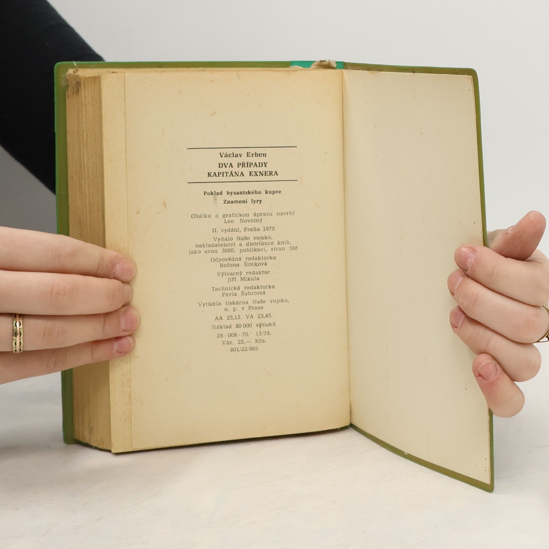 Dva detektivní romány z našeho poválečného prostředí, spojené společnou postavou hlavního detektiva a některých jeho spolupracovníků. První příběh se odehrává v prostředí novinářů a archeologů a záhadná vražda ženy zde vede k překvapujícímu odhalení vysoce postaveného kariéristy. Druhý příběh se zabývá záhadnou smrtí důstojníka na vojenské střelnici, smrtí, která se jeví zpočátku jako nešťastná náhoda, ale v níž je později odhalena zákeřná vražda… Kniha obsahuje detektivní romány: Poklad byzantského kupce Znamení lyry