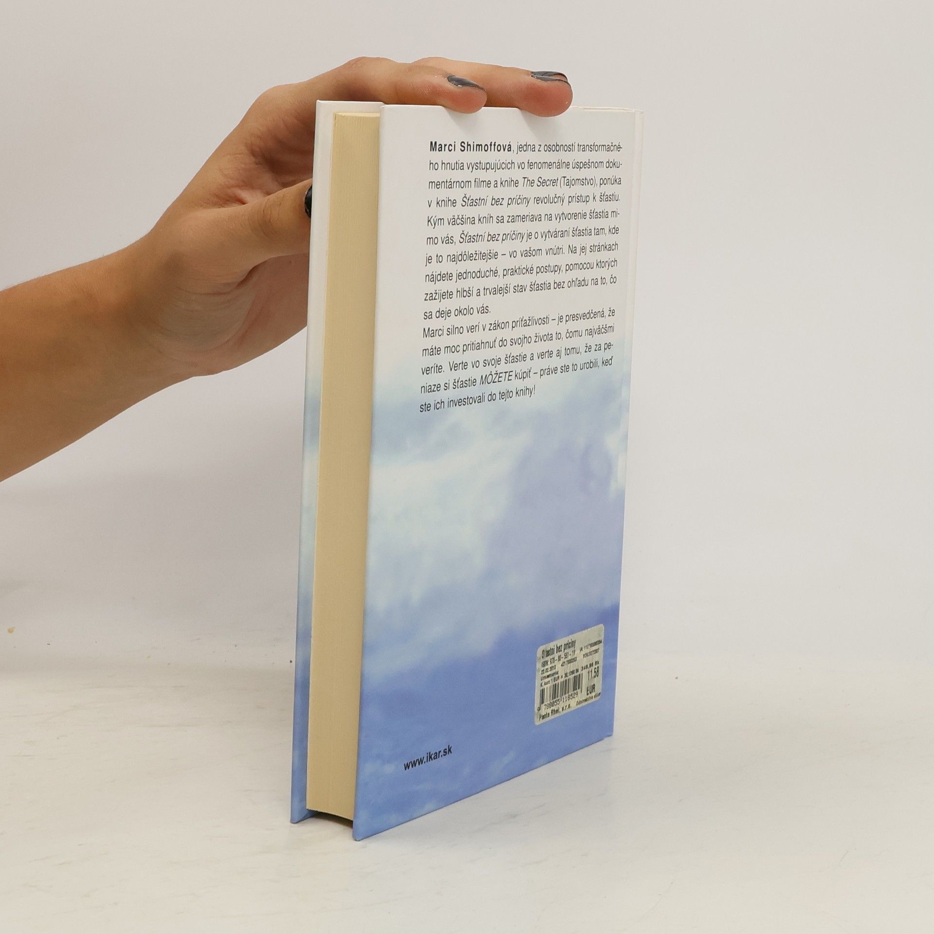 Marci Shimoffová, jedna z osobností transformačného hnutia vystupujúcich vo fenomenálne úspešnom dokumentárnom filme a knihe The Secret (Tajomstvo), ponúka v knihe Šťastní bez príčiny revolučný prístup k šťastiu. Kým väčšina kníh sa zameriava na vytvorenie šťastia mimo vás, Šťastní bez príčiny je o vytváraní šťastia tam, kde je to najdôležitejšie - vo vašom vnútri. Na jej stránkach nájdete jednoduché, praktické postupy, pomocou ktorých zažijete hlbší a trvalejší stav šťastia bez ohľadu na to, čo sa deje okolo vás. Marci silno verí v zákon príťažlivosti - je presvedčená, že máte moc pritiahnuť do svojho života to, čomu najväčšmi veríte. Verte vo svoje šťastie a verte aj tomu, že za peniaze si šťastie MÔŽETE kúpiť - práve ste to urobili, keď ste ich investovali do tejto knihy!