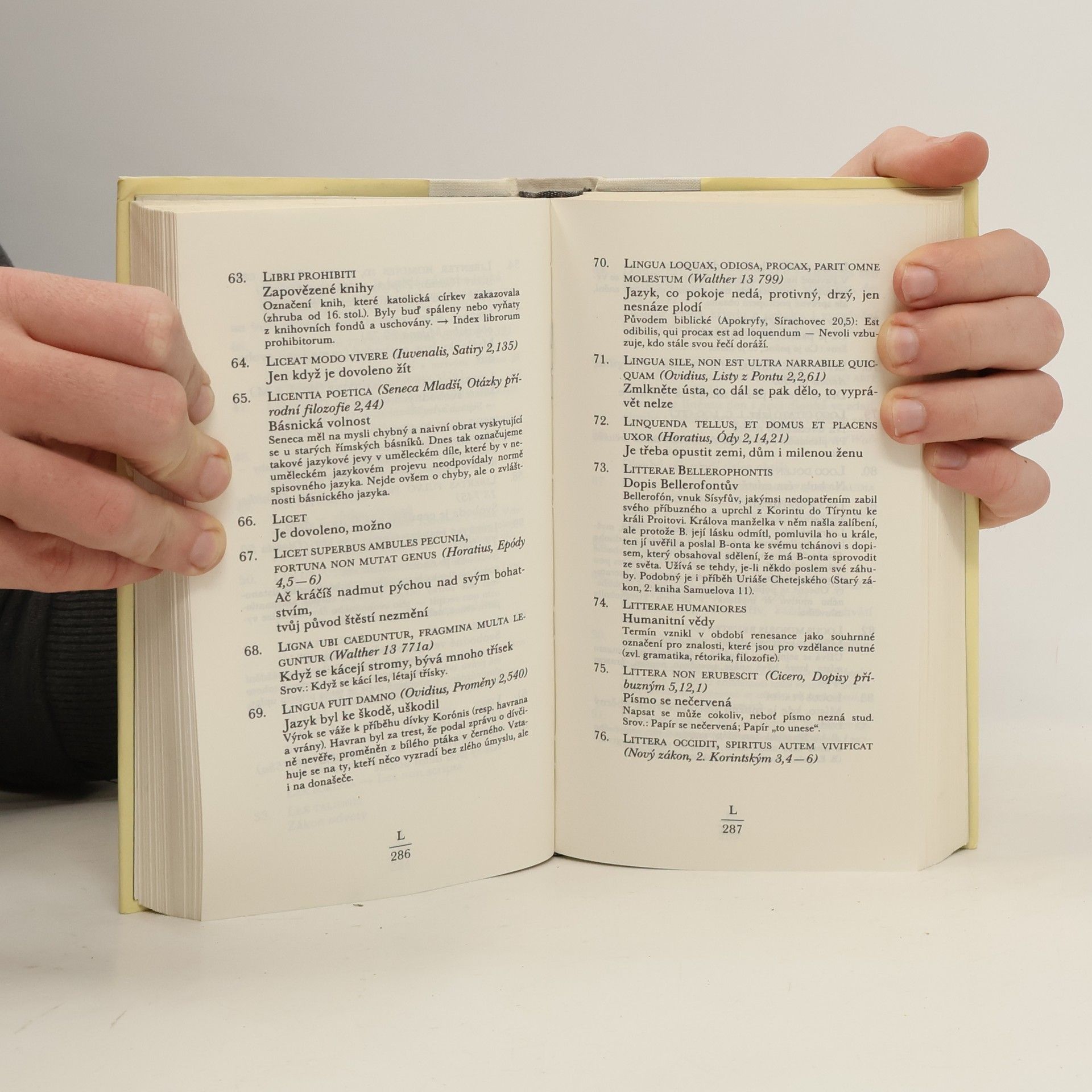 Latinské výroky a citáty řazené abecedně dle latinských originálů s českým abecedním rejstříkem vzadu.