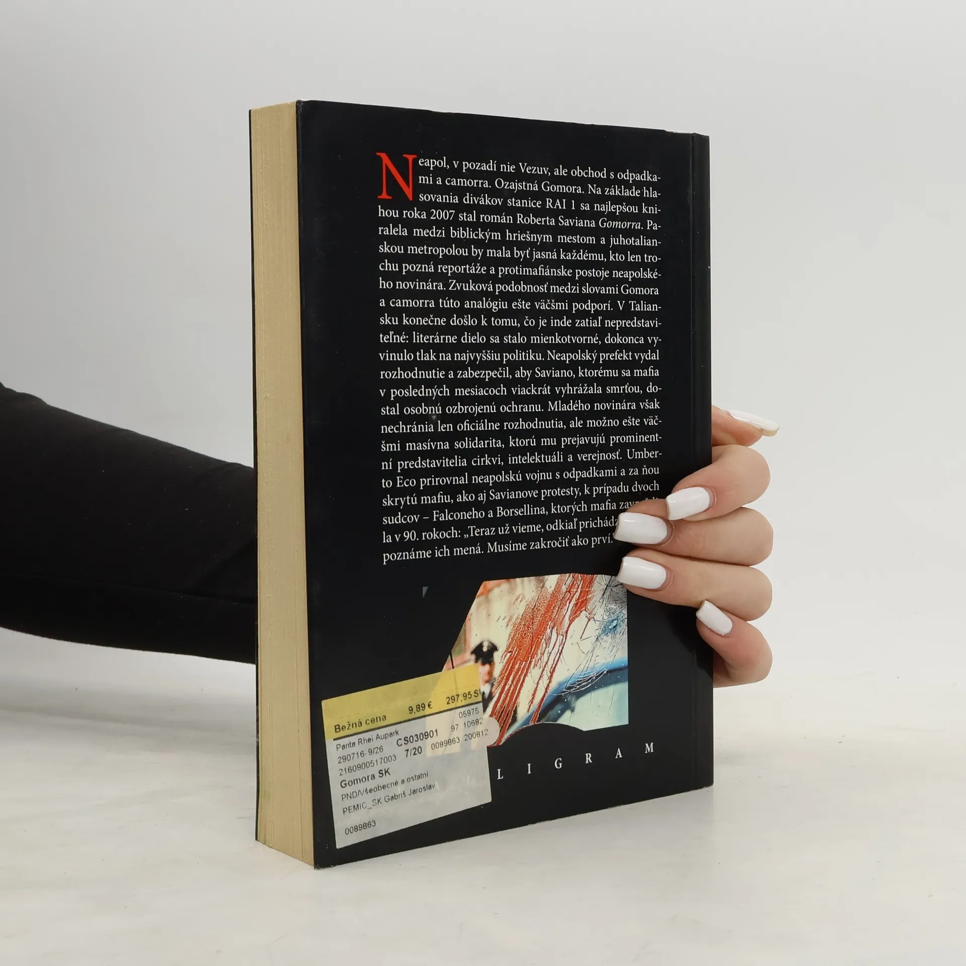 Neapolská mafia má prsty v medzinárodnom obchode s drogami, zarába ťažké peniaze na pašovaní jedovatého odpadu a na nelegálnej výrobe textilu, drží si monopol pri obchodovaní so stavebnými materiálmi a spolieha na vysoké kontakty v Nemecku, Škótsku alebo Číne. 29-ročný taliansky novinár Roberto Saviano riskoval vlastný život a pracoval pre mafiu, aby odhalil jej brutálne praktiky. Výsledkom jeho rešerší je absolútny bestseller – iba v Taliansku sa z knihy predalo 1,2 milióna výtlačkov a na základe hlasovania divákov stanice RAI 1 sa najlepšou knihou roka 2007 stal práve Savianov román-dokument. V Taliansku konečne došlo k tomu, čo je inde zatiaľ nepredstaviteľné: literárne dielo sa stalo mienkotvorné, dokonca vyvinulo tlak na najvyššiu politiku. Neapolský prefekt vydal rozhodnutie a zabezpečil, aby Saviano, ktorému sa mafia v posledných mesiacoch viackrát vyhrážala smrťou, dostal osobnú ozbrojenú ochranu. Mladého novinára však nechránia len oficiálne rozhodnutia, ale možno ešte väčšmi masívna solidarita, ktorú mu prejavujú prominentní predstavitelia cirkvi, intelektuáli a verejnosť. Na motívy Savianovej knihy bol natočený film Gomorra (2008), ktorý získal tento rok Veľkú cenu na festivale v Cannes a je nominovaný na Oscara v kategórii cudzojazyčných filmov.