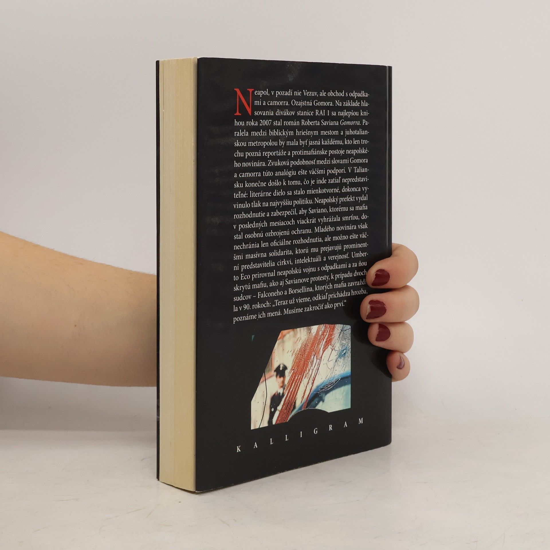 Neapolská mafia má prsty v medzinárodnom obchode s drogami, zarába ťažké peniaze na pašovaní jedovatého odpadu a na nelegálnej výrobe textilu, drží si monopol pri obchodovaní so stavebnými materiálmi a spolieha na vysoké kontakty v Nemecku, Škótsku alebo Číne. 29-ročný taliansky novinár Roberto Saviano riskoval vlastný život a pracoval pre mafiu, aby odhalil jej brutálne praktiky. Výsledkom jeho rešerší je absolútny bestseller – iba v Taliansku sa z knihy predalo 1,2 milióna výtlačkov a na základe hlasovania divákov stanice RAI 1 sa najlepšou knihou roka 2007 stal práve Savianov román-dokument. V Taliansku konečne došlo k tomu, čo je inde zatiaľ nepredstaviteľné: literárne dielo sa stalo mienkotvorné, dokonca vyvinulo tlak na najvyššiu politiku. Neapolský prefekt vydal rozhodnutie a zabezpečil, aby Saviano, ktorému sa mafia v posledných mesiacoch viackrát vyhrážala smrťou, dostal osobnú ozbrojenú ochranu. Mladého novinára však nechránia len oficiálne rozhodnutia, ale možno ešte väčšmi masívna solidarita, ktorú mu prejavujú prominentní predstavitelia cirkvi, intelektuáli a verejnosť. Na motívy Savianovej knihy bol natočený film Gomorra (2008), ktorý získal tento rok Veľkú cenu na festivale v Cannes a je nominovaný na Oscara v kategórii cudzojazyčných filmov.