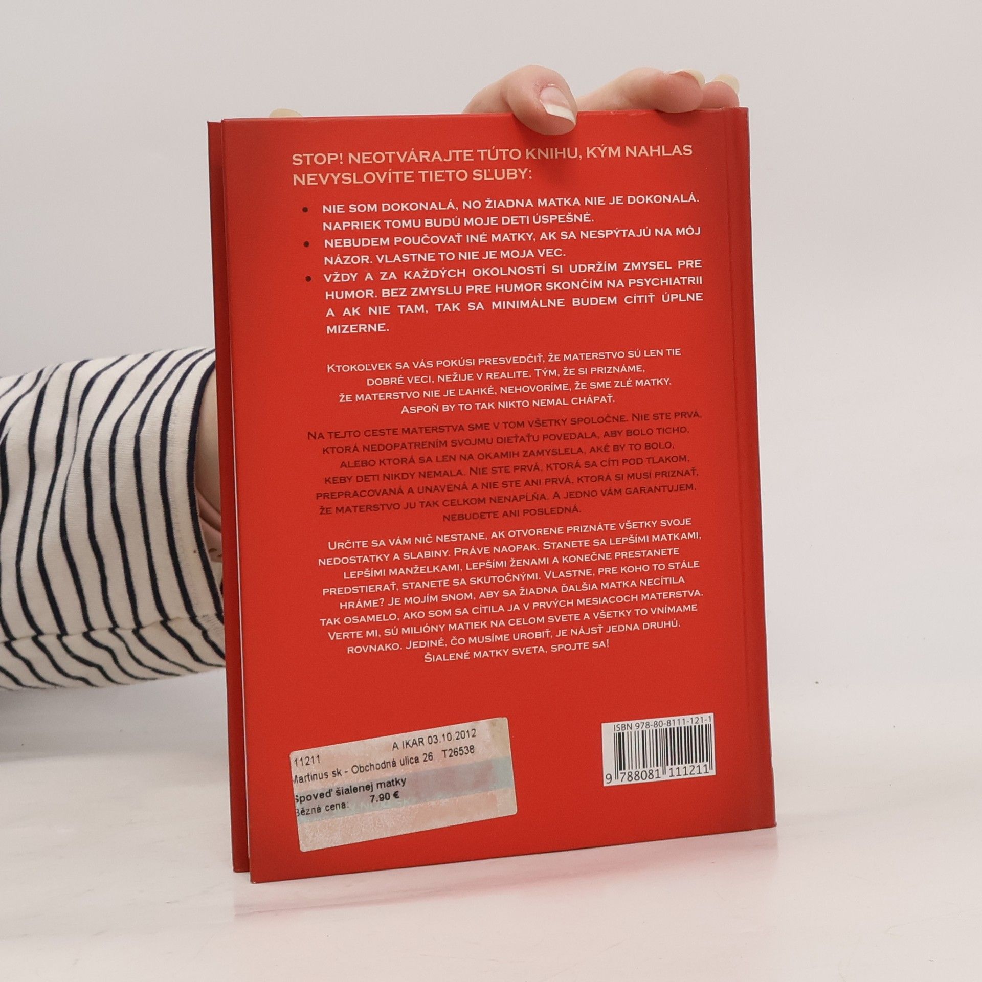 Kniha opisuje neskutočne úprimné a často až smiešne príbehy zo života mamičiek, ktoré prežívajú každý deň. Kapitoly pokrývajú všetky témy bežného života od manželov, cez deti až po každodenné problémy v rodine. Či už ste mama, otec, babička, dedko, teta, strýko, učiteľ alebo krstný otec, pri čítaní Spovede šialenej matky budete súhlasne prikyvovať a smiať sa. Spoveď šialenej matky sú neskutočne úprimné a často smiešne príbehy zo života mamičiek, ktoré prežívajú každý deň so svojimi deťmi. Kapitoly sa venujú všetkým témam bežného života od manželov, cez deti až po každodenné problémy v rodine. V tomto smere bude Spoveď šialenej matky balzam na vašu dušu. Je to veselá i brutálna kniha plná rodičovskej úprimnosti a otvorenosti. Unavujú vás už príliš seriózne návody na výchovu detí: Spoveď šialenej matky je ten správny protiliek.