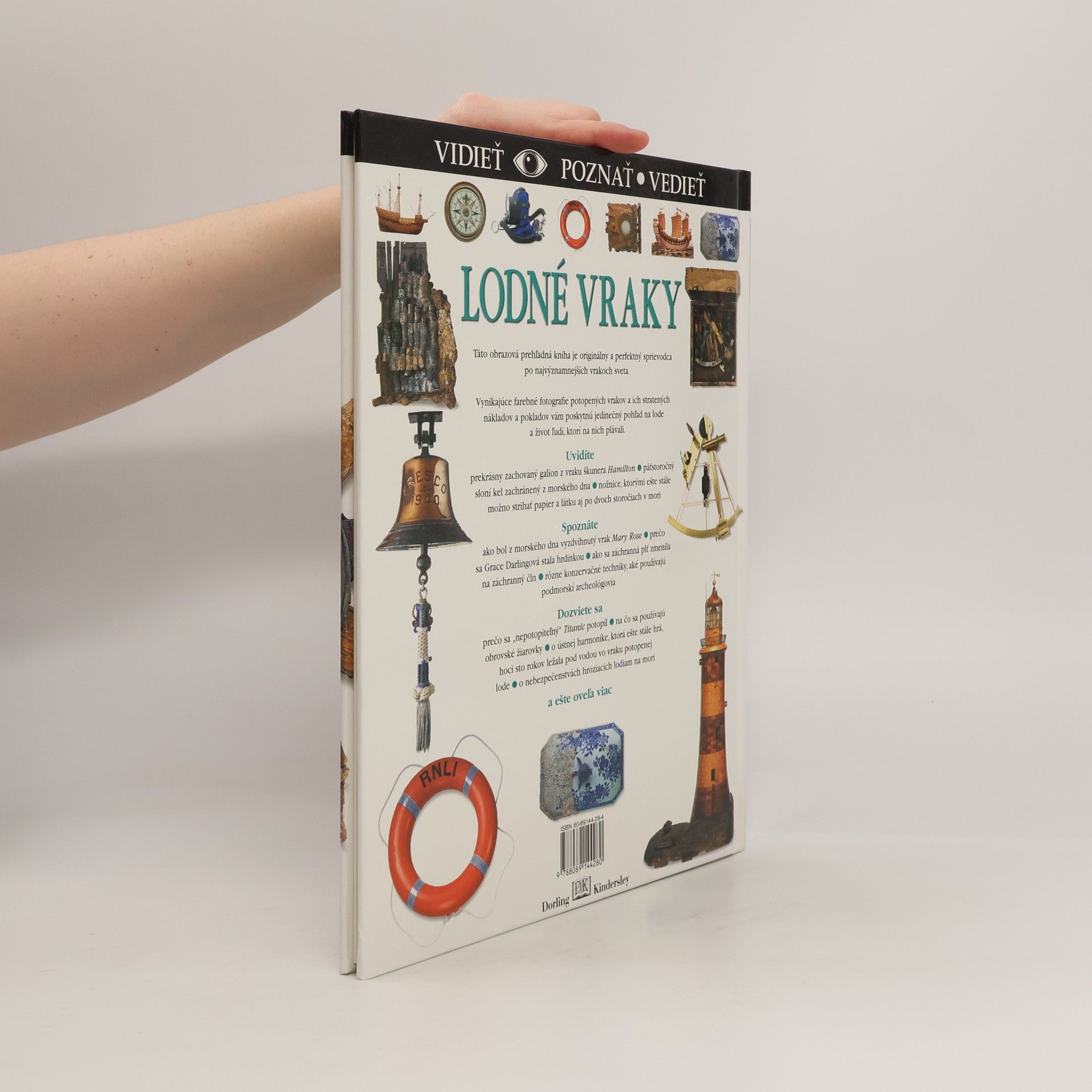 Spoznajte tajomstvá sveta lodných vrakov-ako boli objavené a zachované. Táto obrazová prehľadná kniha je originálny a perfektný sprievodca po najvýznamnejších vrakoch sveta. Vynikajúce farebné fotografie potopených vrakov a ich stratených nákladov a pokladov vám poskytnú jedinečný pohľad na lode a život ľudí, ktorí na nich plávali. Kapitoly: Skaly, vraky a zachraňovanie, Nebezpečenstvá mora, Staroveké vraky, Prvé výpravy za vrakmi, Džunky z Ďalekého východu, Vyzdvihnutie Mary Rose, Britské vraky, Vraky "Armady", Stratené lode z Ontaria, Odhalenie lode Vasa, "Nepotopiteľný" Titanic, Katastrofy tankerov, Navigácia, Navádzacie svetlá, Spojenie, Zachránení stroskotanci, Záchrana zo vzduchu a z mora, Vybavenie záchranárskej lode, Dávne ponory, Prístrojové potápanie, Prieskum morských hlbín, Hľadanie vraku a jeho záchrana, Život na palube, Stratené náklady, Rekonštrukcia a konzervácia, Stroskotania a umenie. Prvé vydanie.