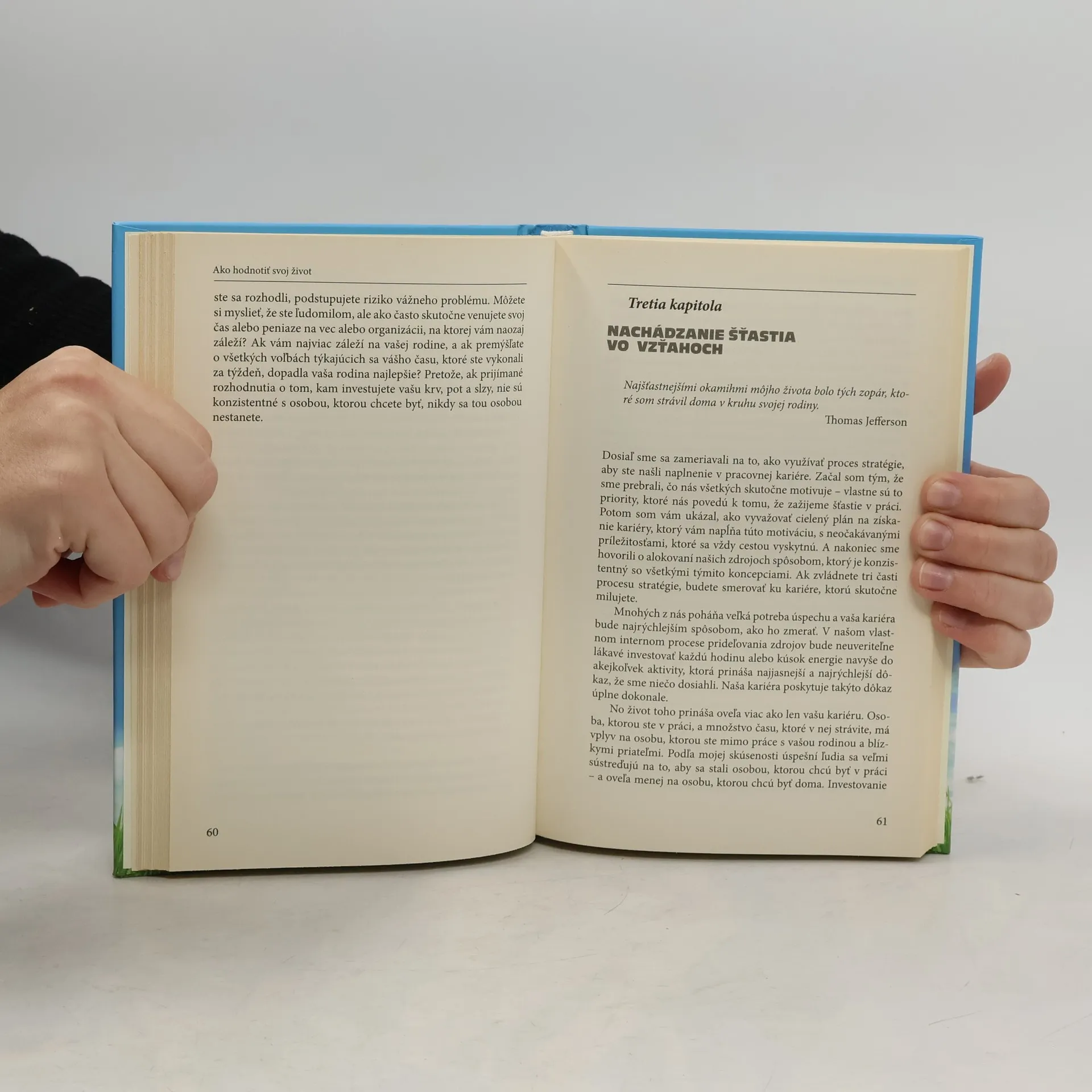 Ako si môžem byť istý, že moje vzťahy s manželom/manželkou, deťmi, širšou rodinou a blízkymi priateľmi sa stanú trvalým zdrojom môjho šťastia? Ako si môžem byť istý, že budem vo svojej kariére úspešný a šťastný? Nesľubujeme, že vám táto kniha ponúkne jednoduché odpovede - nájsť ich si vyžaduje tvrdú prácu a môže to trvať desaťročia. Je to však jedna z tých vecí v živote, ktorá naozaj stojí za námahu. Veríme, že táto kniha vám pomôže pokračovať vo vašej ceste tak, aby ste si na konci vedeli dať jednoznačnú odpoveď na otázku, ako budete hodnotiť svoj život.