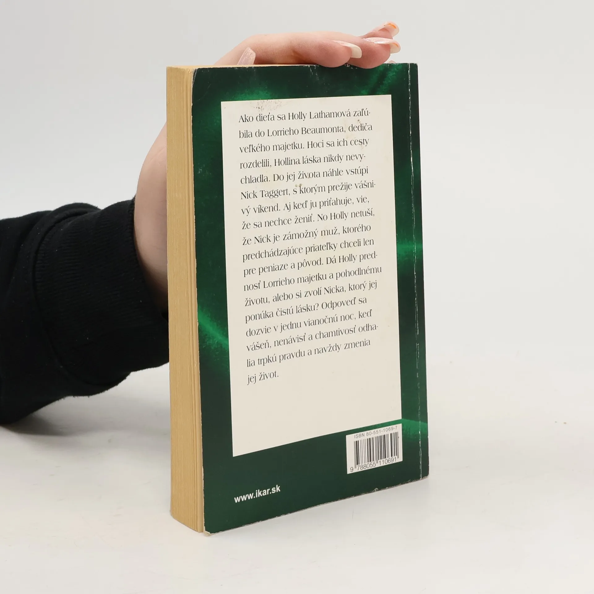 Keď mala Holly Lathamová trinásť rokov, zaľúbila sa do Lorrieho Beaumonta, dediča veľkého majetku. Na istý čas sa ich cesty rozdelili, no Hollina láska nikdy celkom nevychladla. Do jej života však náhle vstúpi Nick Taggert, s ktorým prežije nádherný, vášnivý víkend. Aj keď ju priťahuje, vie, že sa nechce ženiť. No Holly netuší, že Nick je zámožný muž, ktorého predchádzajúce priateľky chceli len pre peniaze a pôvod. Dá Holly prednosť Lorrieho majetku a pohodlnému životu, alebo si zvolí Nicka, ktorý jej ponúka čistú lásku? Odpoveď sa dozvie v jednu vianočnú noc, keď vášeň, nenávisť a chamtivosť odhalia trpkú pravdu a navždy zmenia jej život.