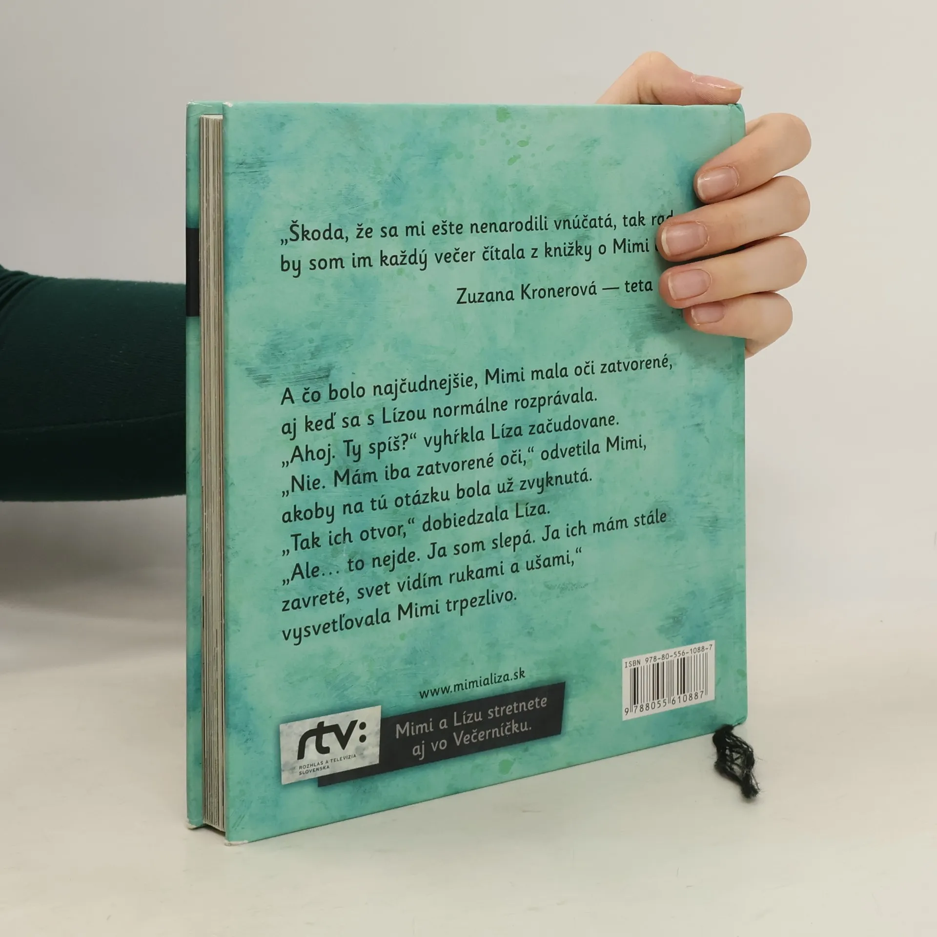 „V mojom meste sú všelijaké domy. Tehlové, kamenné, betónové. Niektoré sú hladké, iné majú zasa hrboľaté steny. Sú vysoké. Viem to, pretože vtáčiky, čo čvirikajú na strechách, počujem dosť slabo.“ Takto hovorí Mimi, ktorá žije vo svete za zavretými očami. No jej svet vôbec nie je nudný a čiernobiely. Spolu s neposednou Lízou spoznávajú susedov a prežívajú dobrodružstvá, kde zrak zrazu nie je taký dôležitý.