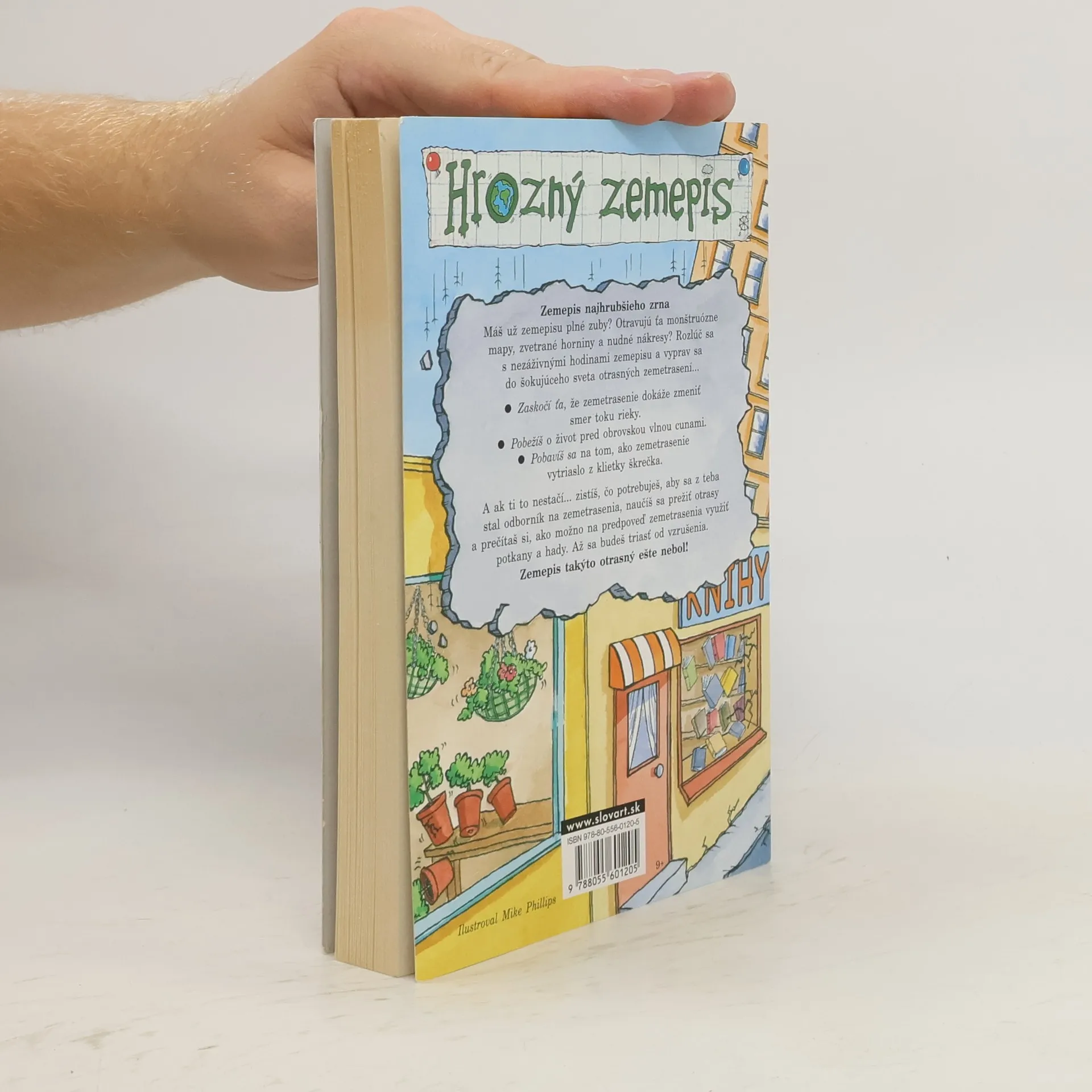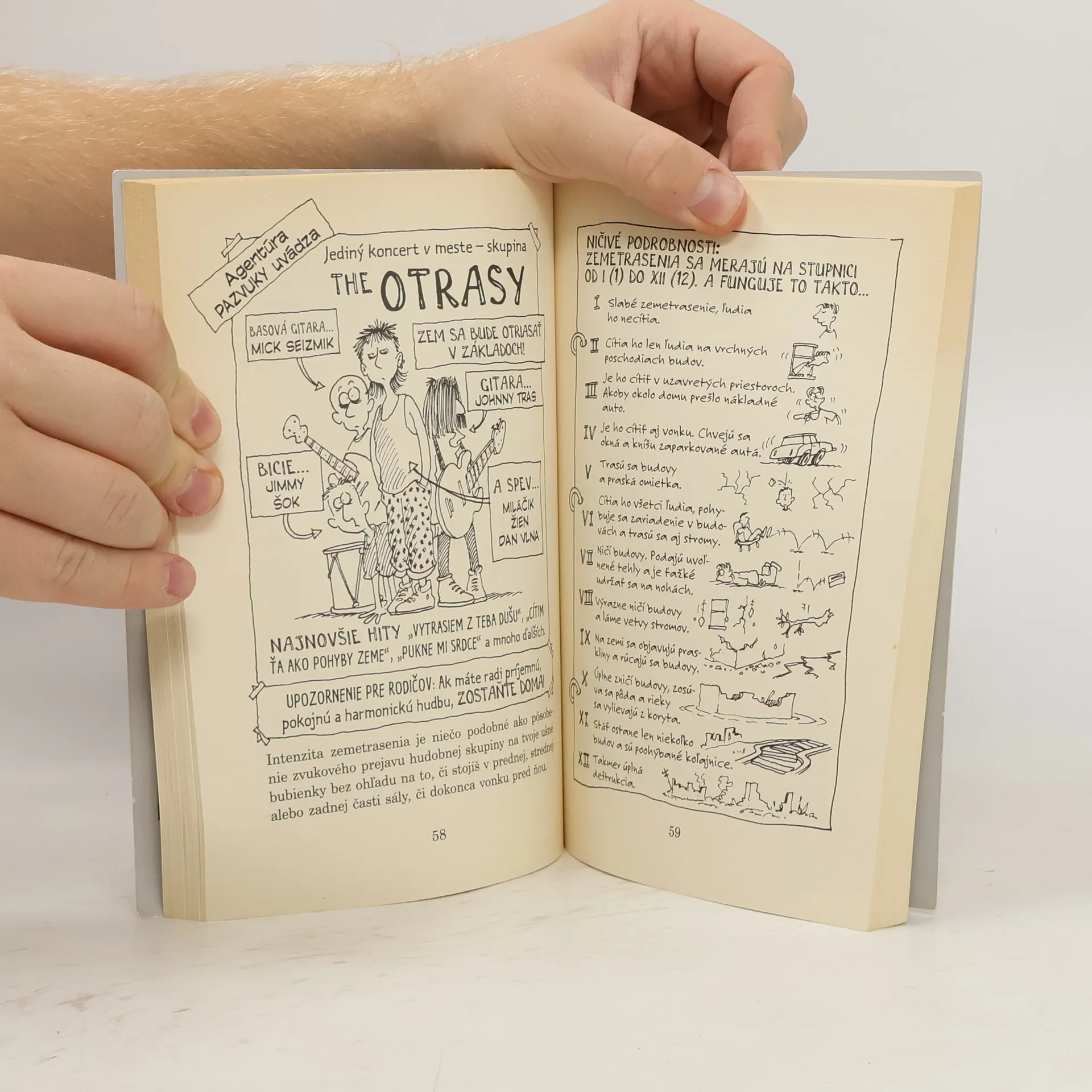 Máte už zemepisu plné zuby? Otravujú vás monštruózne mapy, zvetrané horniny a nudné nákresy? Rozlúčte sa s nezáživnými hodinami zemepisu a vypravte sa do šokujúceho sveta otrasných zemetrasení. Zaskočí vás, že zemetrasenie zmenilo smer toku rieky. Pobežíte ako o život pred obrovskou vlnou cunami. Pobavíte sa na tom, ako zemetrasenie vytriaslo z klietky aj škrečka. A ak vám to nestačí... zistíte, čo potrebujete, aby sa z vás stal odborník na zemetrasenia, naučíte sa, prežiť otrasy a prečítate si, ako možno na predpoveď zemetrasenia využiť potkany a hady. Až sa budete triasť od vzrušenia